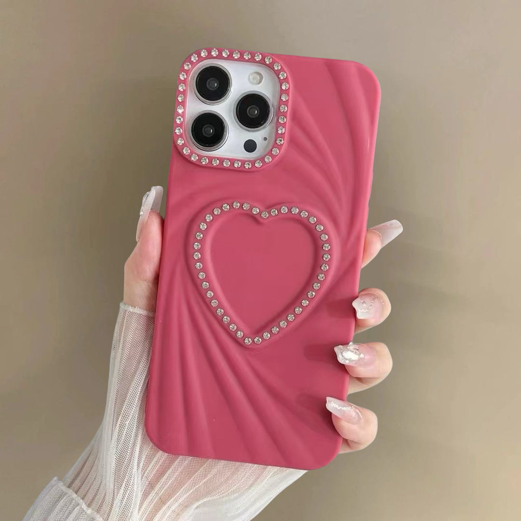 หรูหราสามมิติเจาะด้านข้างรักซิลิโคนเคสโทรศัพท์สําหรับiphone11 12 13 14 15 16 Pro MAX IXS MAX XR XS 7 8 Plusกันกระแทกป้องกันกล้องป้องกันการตกนุ่มปกหลัง