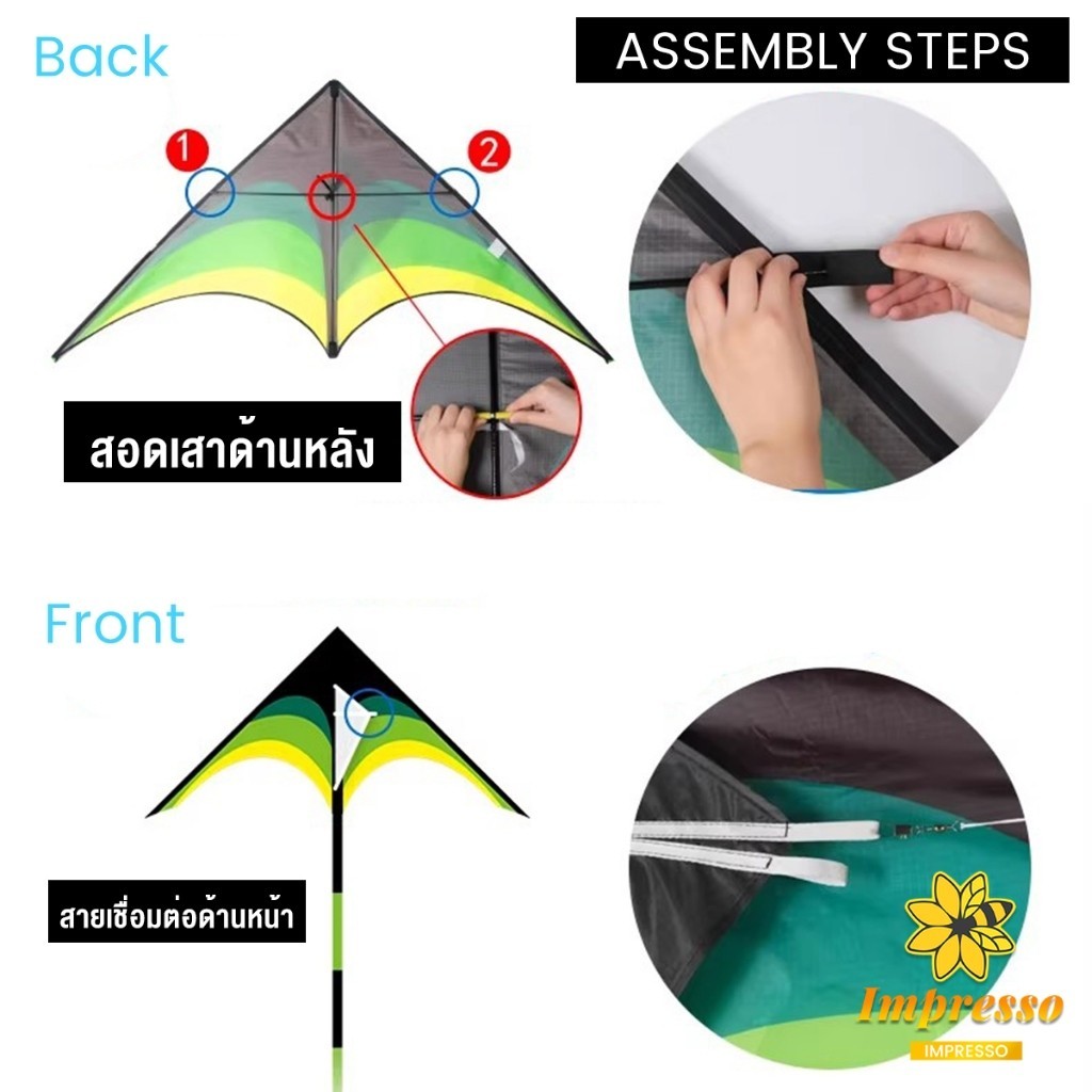 Impresso ว่าวสามเหลี่ยม ว่าวสายรุ้ง สีสดใส มีหางว่าวยาว รวมประมาณ 1.9 m เรียว Colored kite