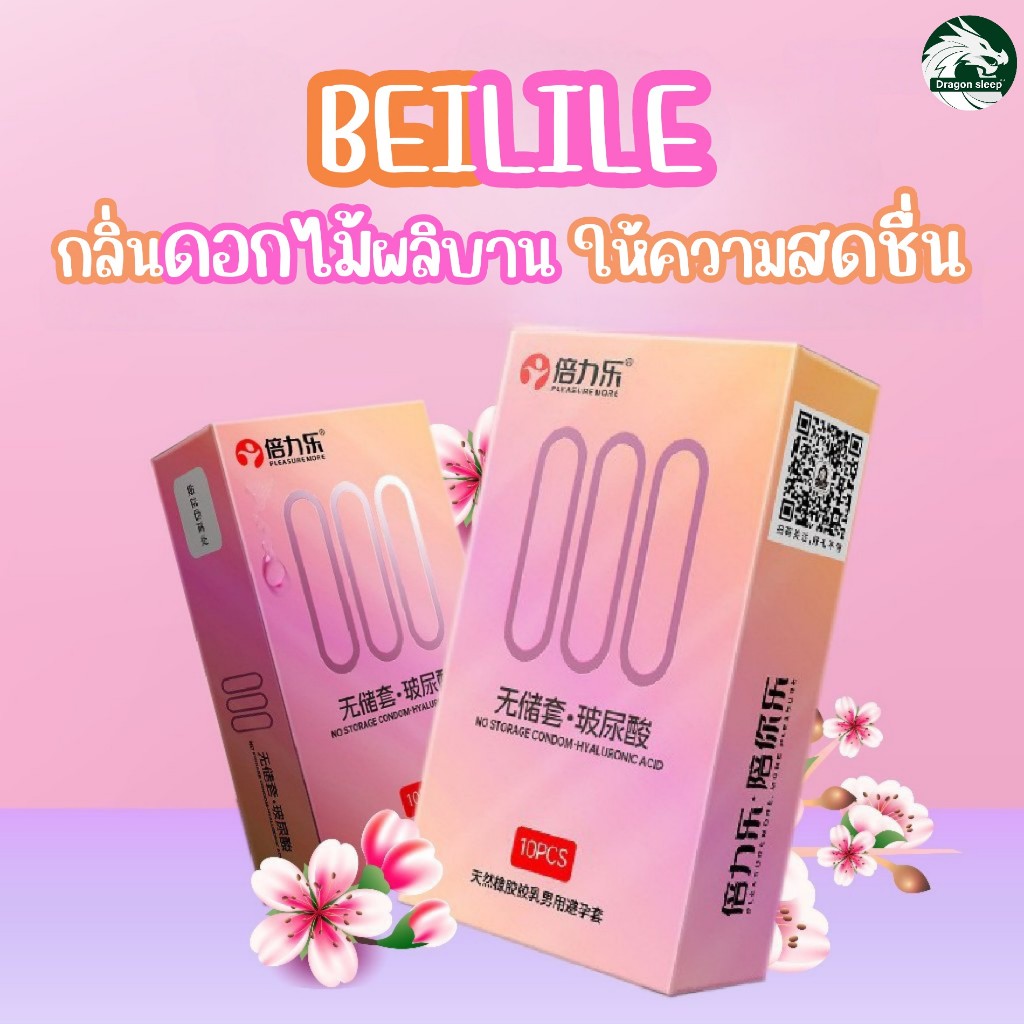 Beilile ถุงยางอนามัย ไม่มีปลายกระเปาะ กลิ่นดอกไม้ บางมากกว่า 0.01 30-50% เพิ่มน้ำหล่อลื่น 2 เท่า ไซส์ 52±2
