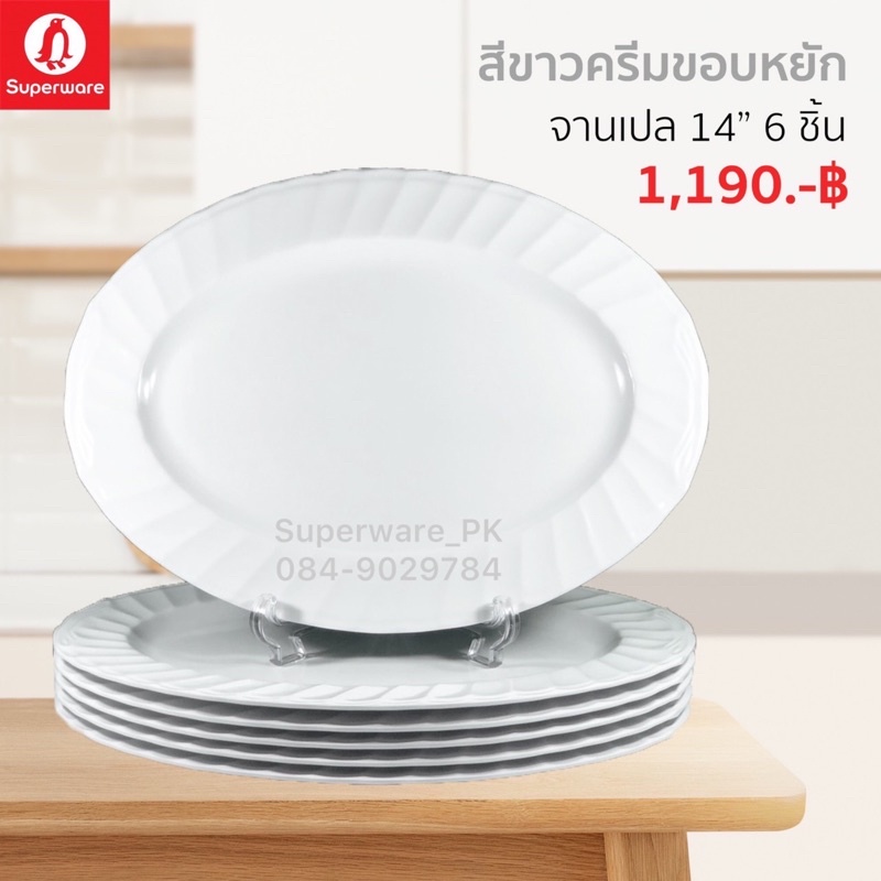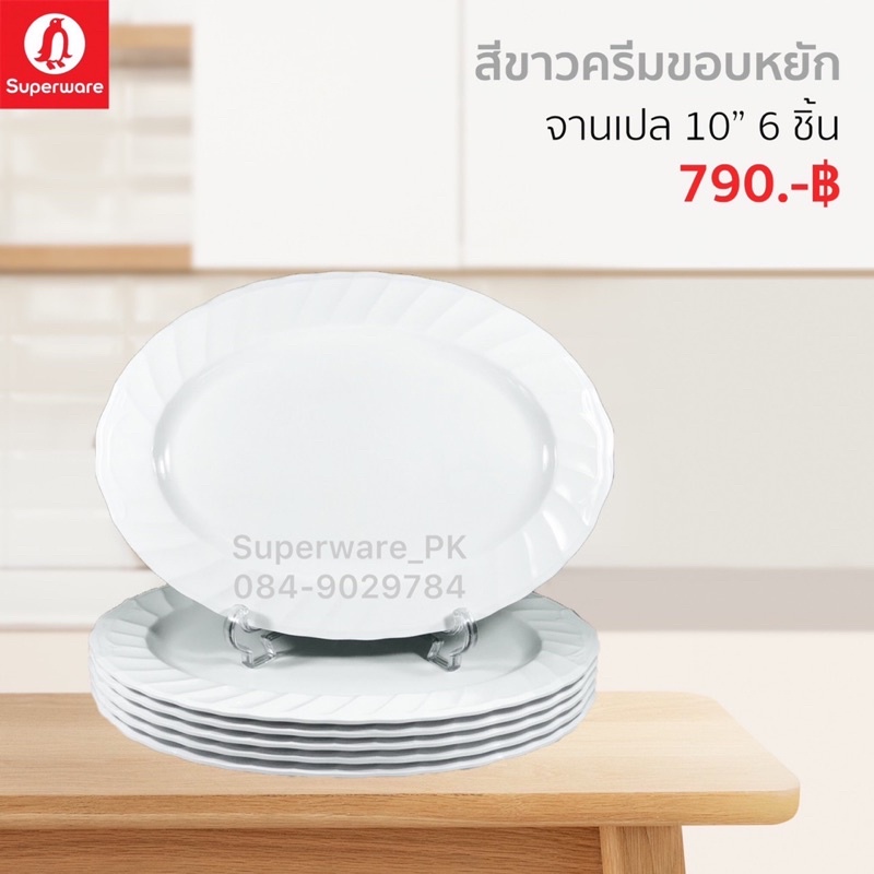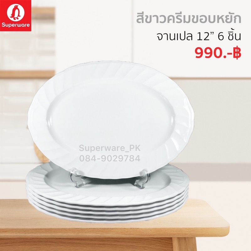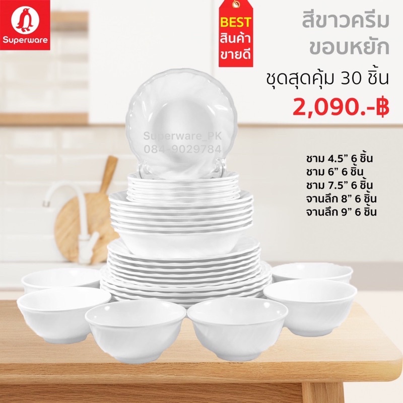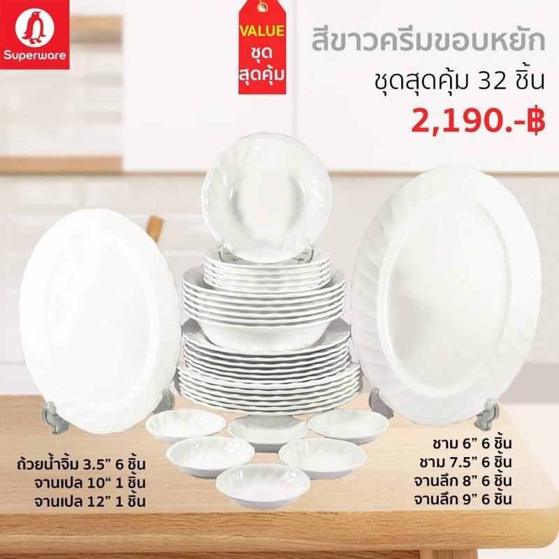 จาน ชามเมลามีน สีพื้นขาวขอบหยัก ชุดเซ็ท 32 ชิ้น ราคาถูก สุดคุ้ม ขายดีอันดับ🥇 ซุปเปอร์แวร์แท้ 💯 ตรานกแพนกวิน