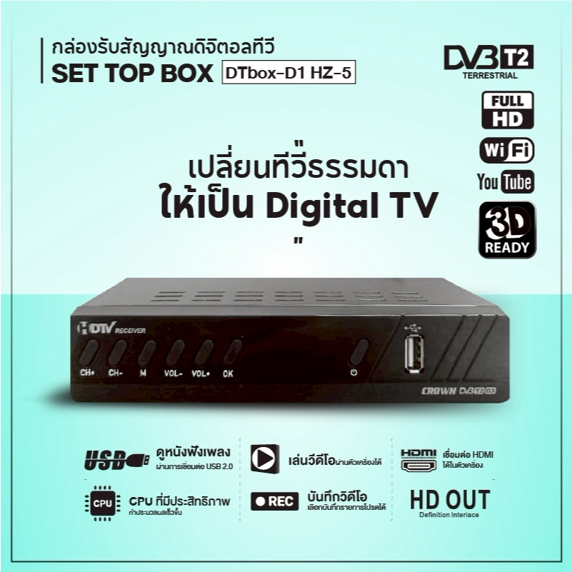 ABL กล่องรับสัญญาณ DVB T2 HZ-5 ทีวีดิจิตอล เวอร์ชั่นอัพเกรดเพื่อรับชม Tik Tok HDMI WI-FI PSI S2X HD