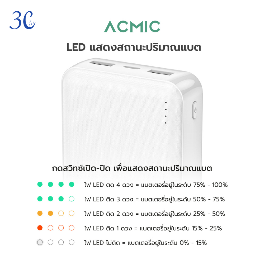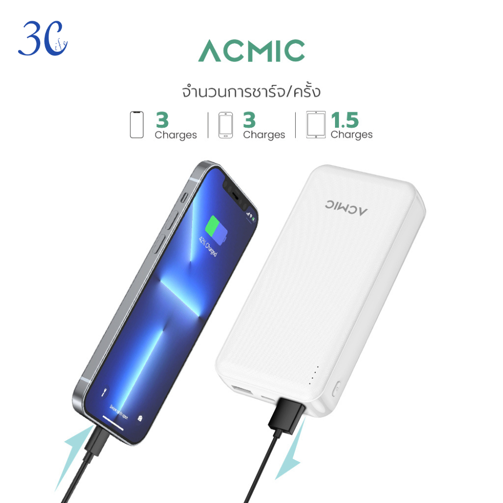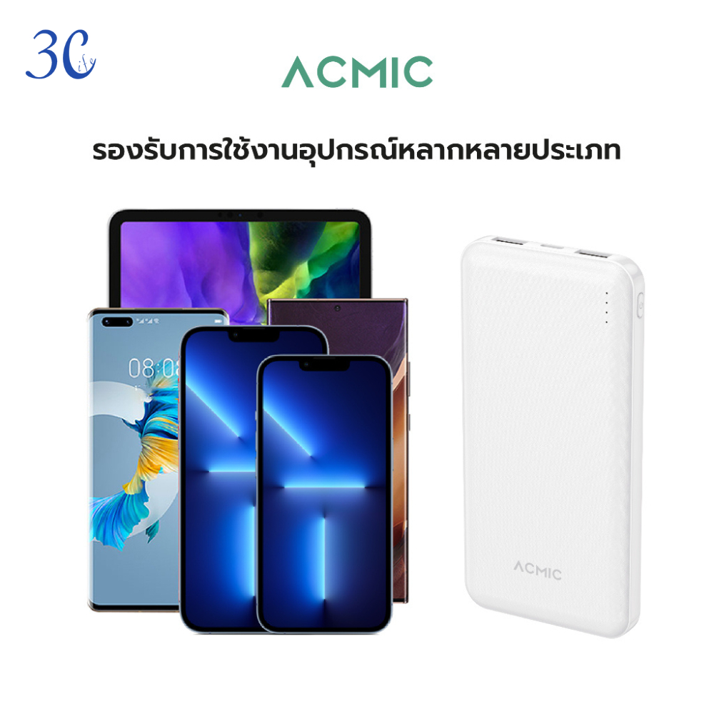ACMIC-20000mAh/10000mAh พาวเวอร์แบงค์ชาร์จเร็วPD20W ขาปลั๊ก/สายชาร์จในตัว หน้าจอLED