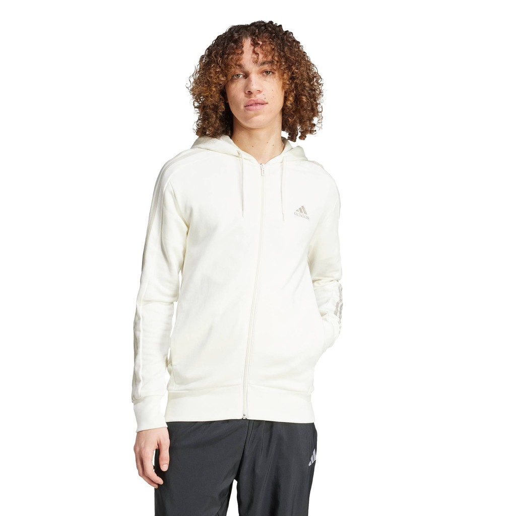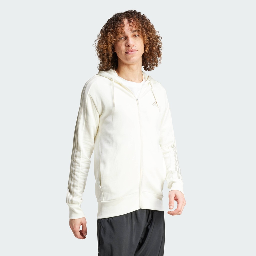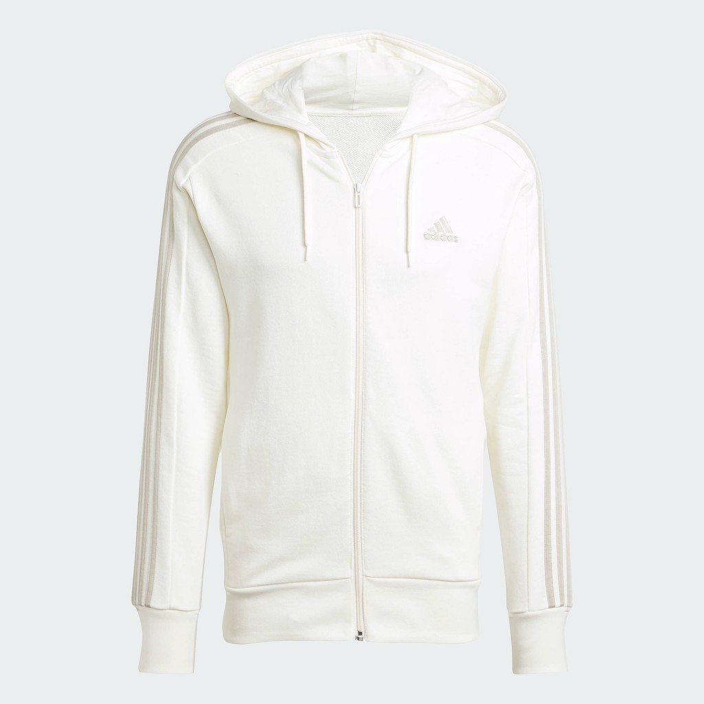 adidas ไลฟ์สไตล์ เสื้อฮู้ดซิปยาวเต็มตัว Essentials French Terry 3-Stripes ผู้ชาย สีขาว IS1373