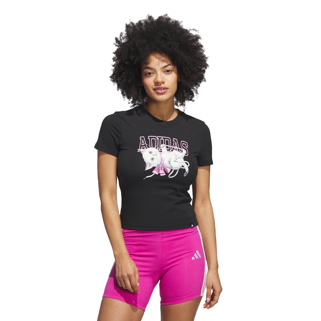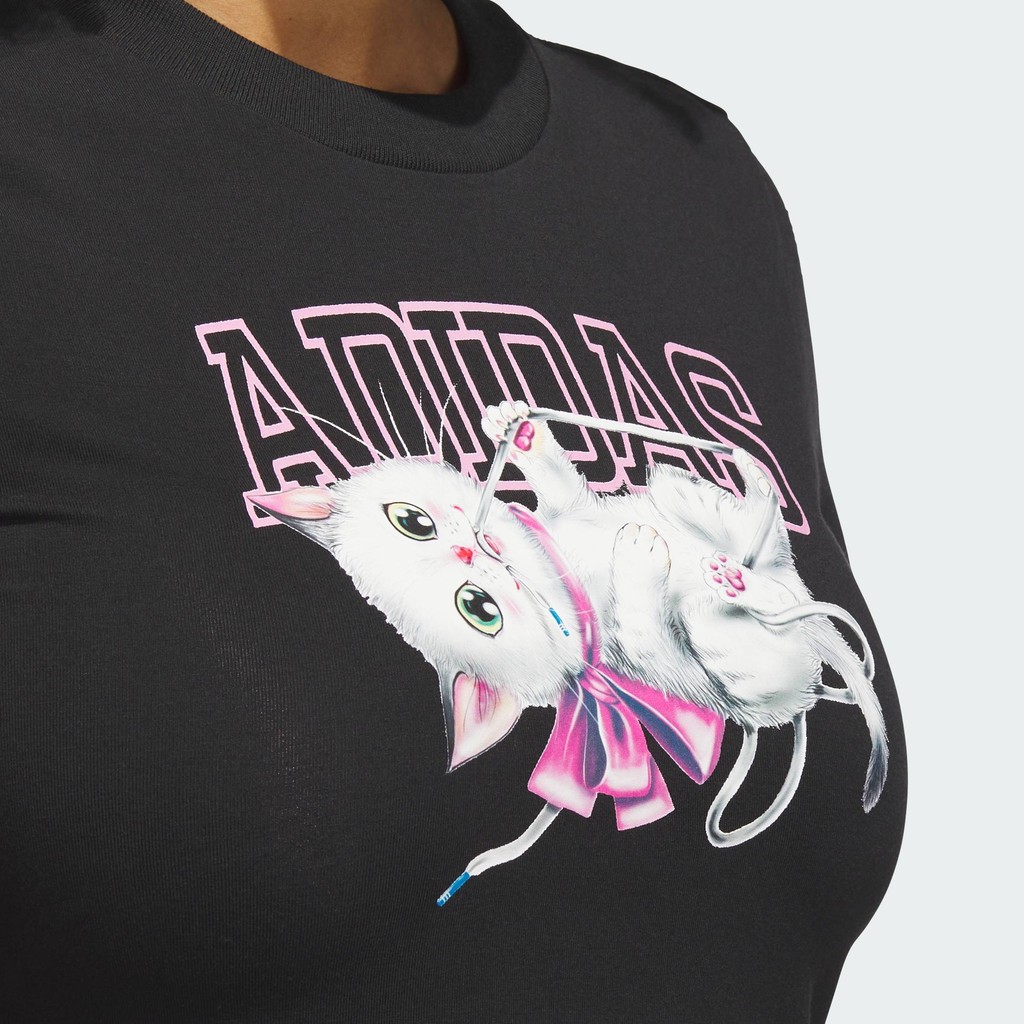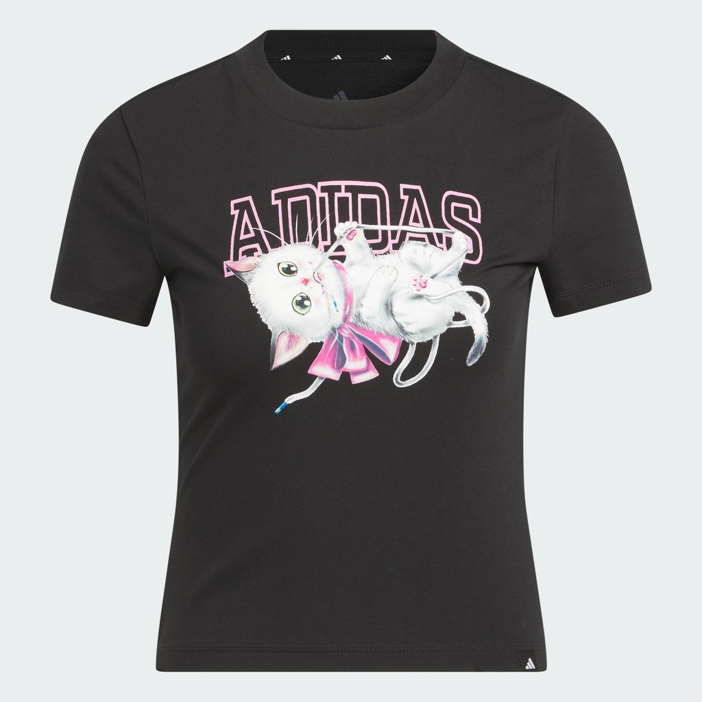adidas ไลฟ์สไตล์ เสื้อยืดกราฟิกลูกแมวตัวเก่งตามฤดูกาล ผู้หญิง สีดำ JN2548