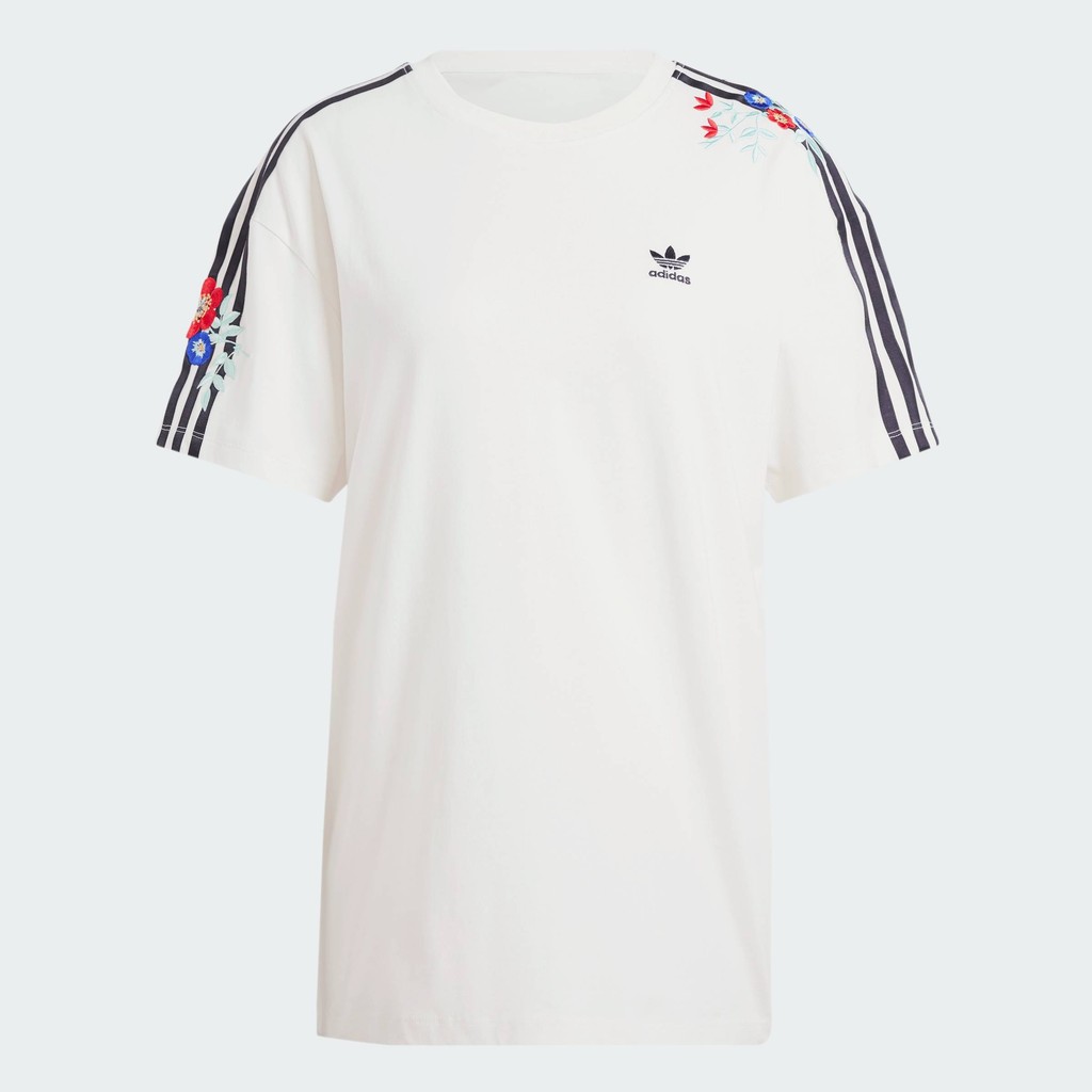 adidas ไลฟ์สไตล์ เสื้อยืดทรงหลวมลายดอกไม้ ผู้หญิง สีขาว IS2431