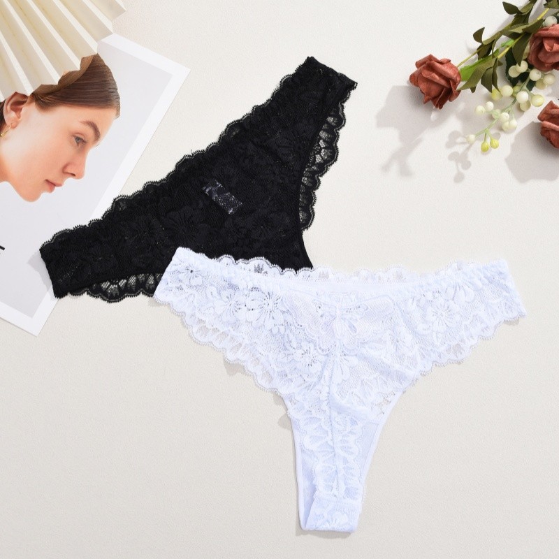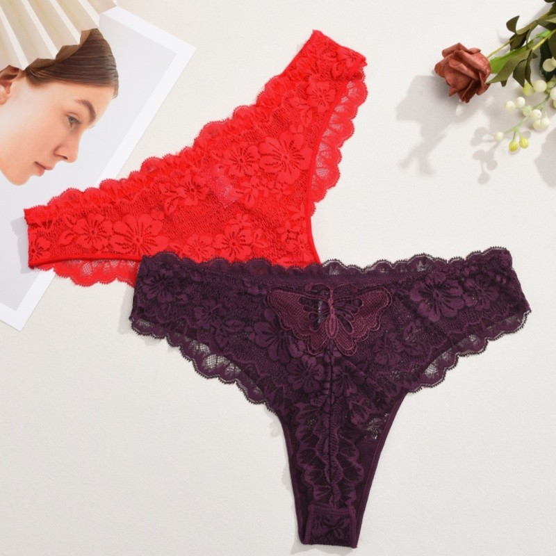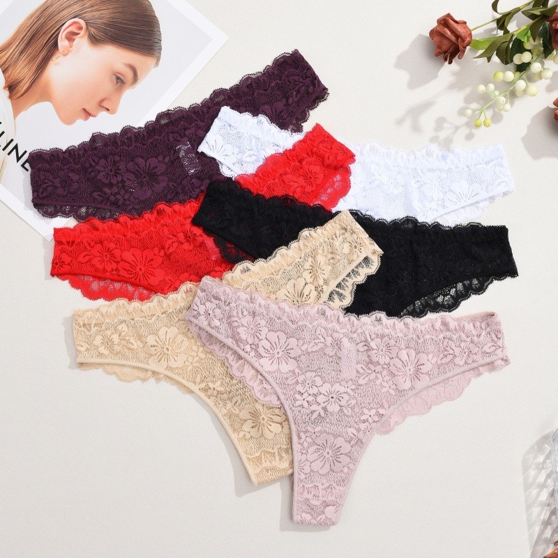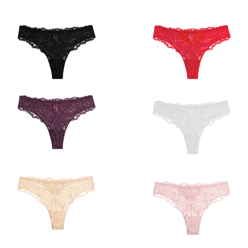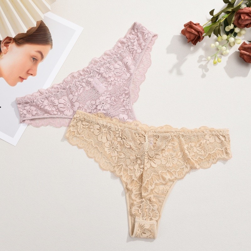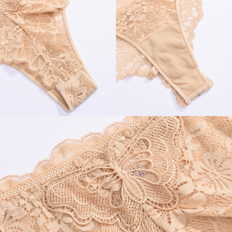 กางเกงชั้นในลูกไม้สำหรับผู้หญิง สไตล์เซ็กซี่เอวต่ำ สีดินทอง ระบายอากาศได้ดี
