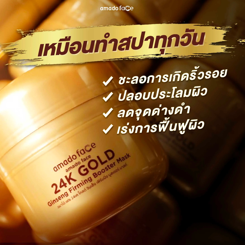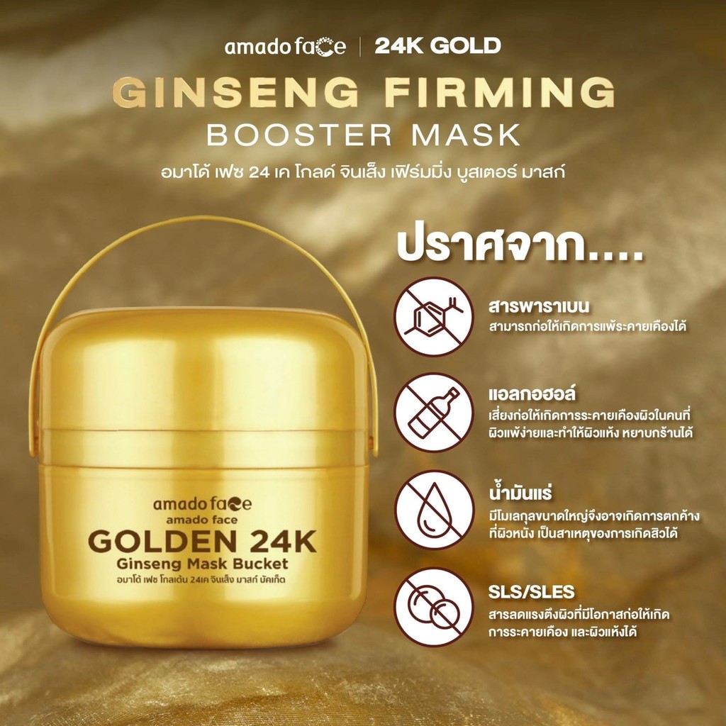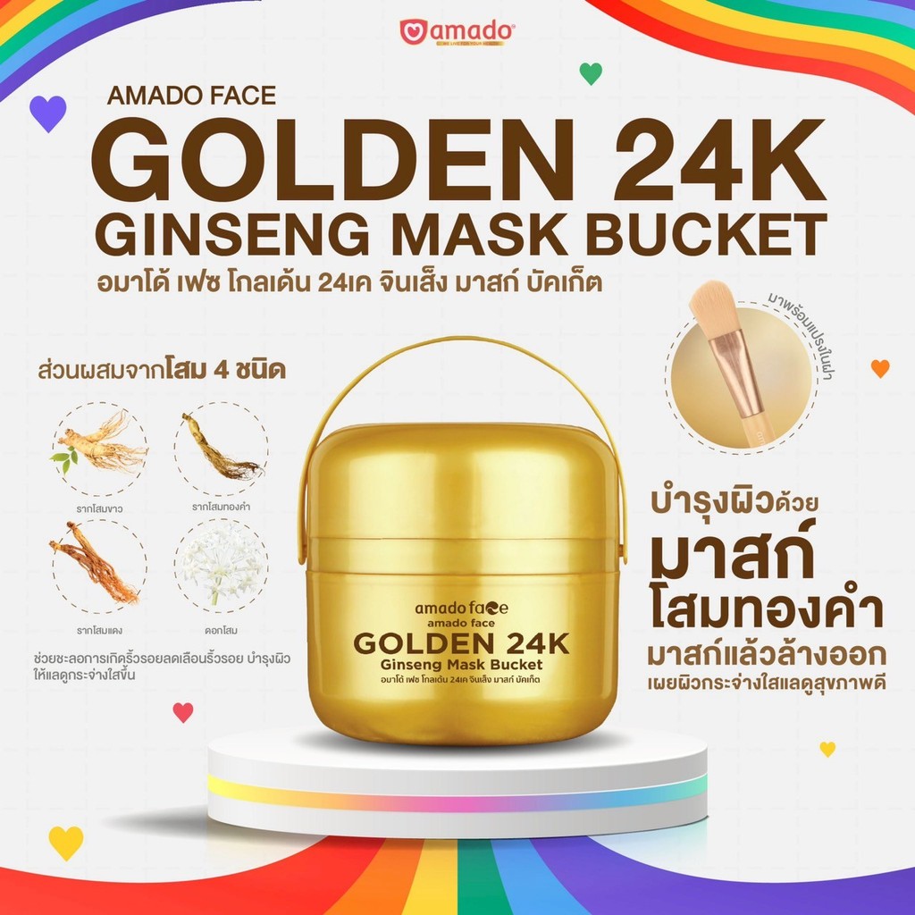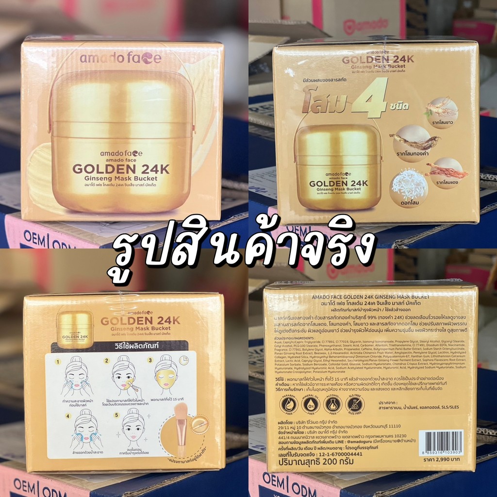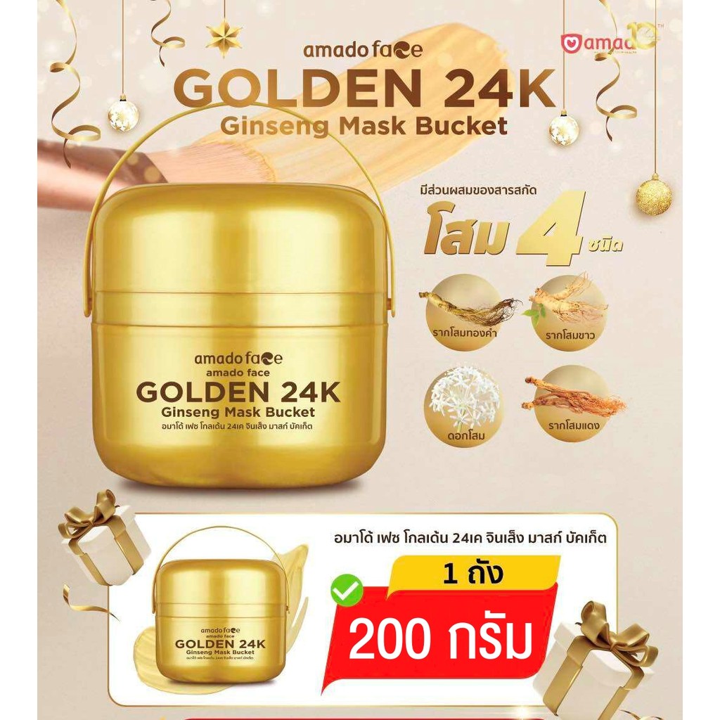 Amado Face Golden 24K Ginseng Mask Bucket อมาโด้ เฟส โกลเด้น 24เค จินเส็ง มาส์ก บัคเก็ต [200 กรัม] [1 กระปุก]