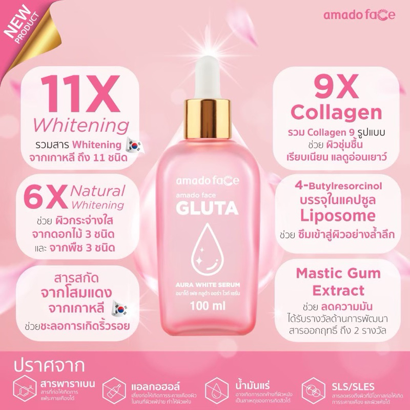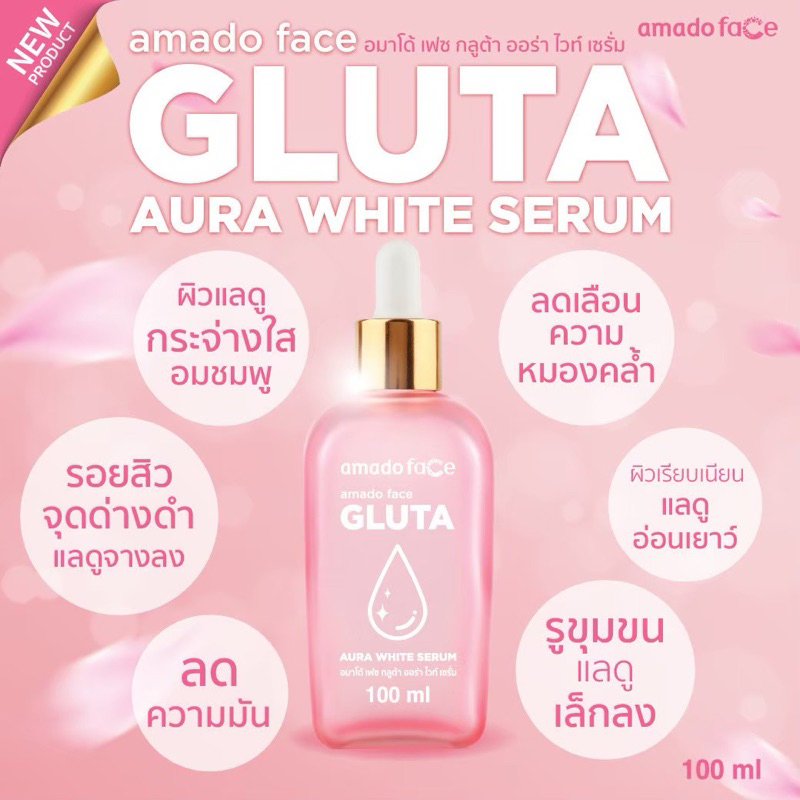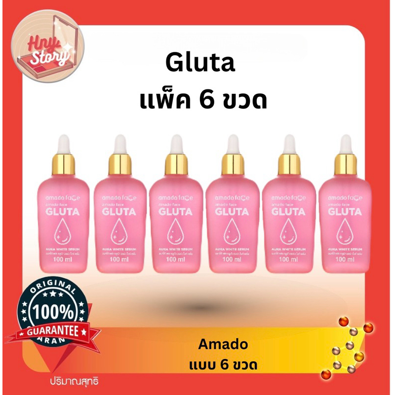 Amado Gluta Aura White Serum อมาโด้ กลูต้า ออร่า ไวท์ เซรั่ม ขนาด 100มล. จำนวน 6 ขวด