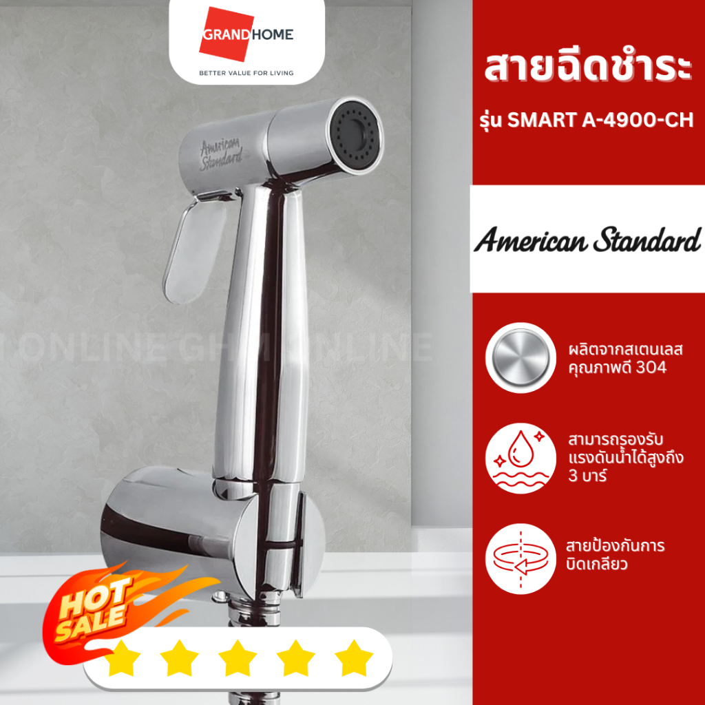 GRANDHOMEMART สายฉีดชำระ AMERICAN STANDARD รุ่น สมาร์ท A-4900-CH สเตนเลสชุบโครเมี่ยม