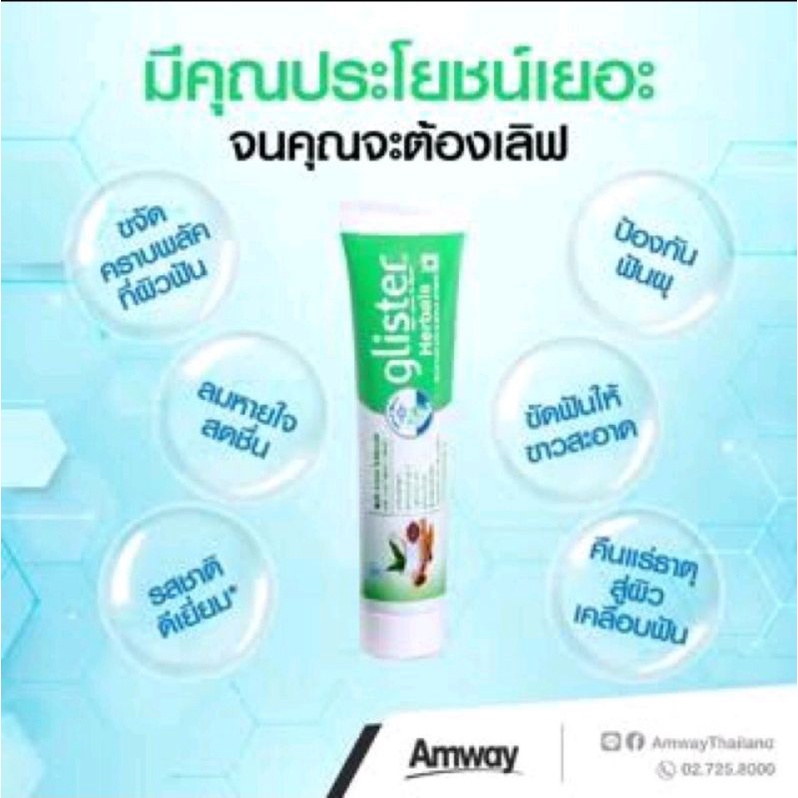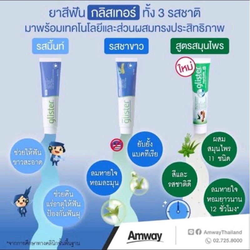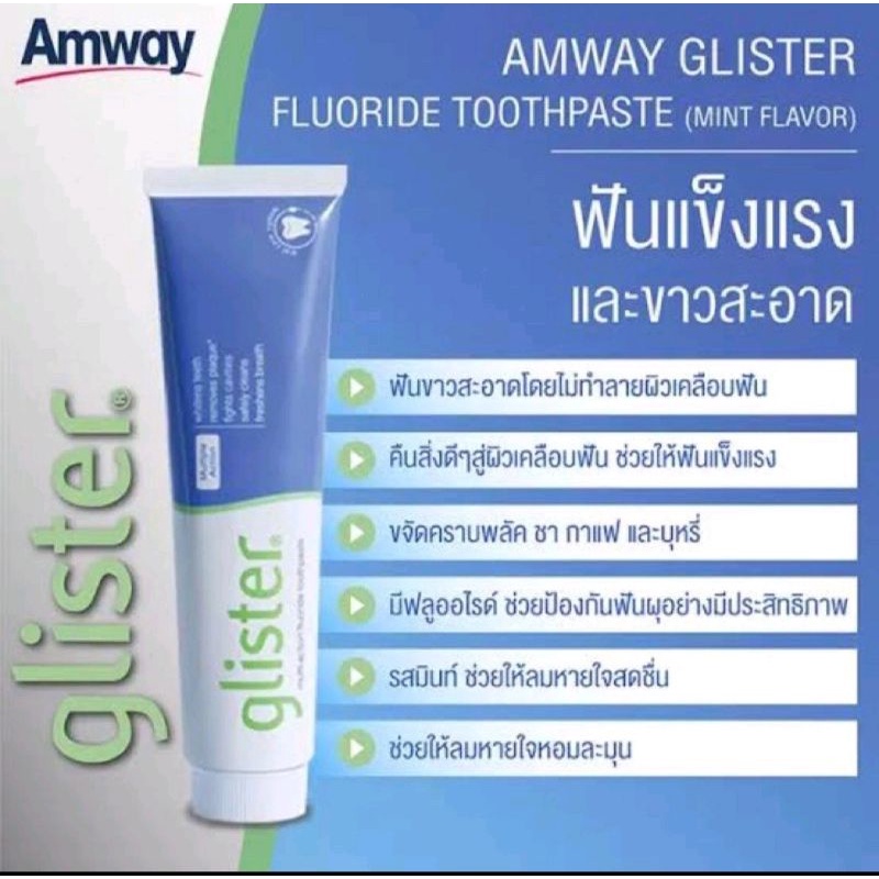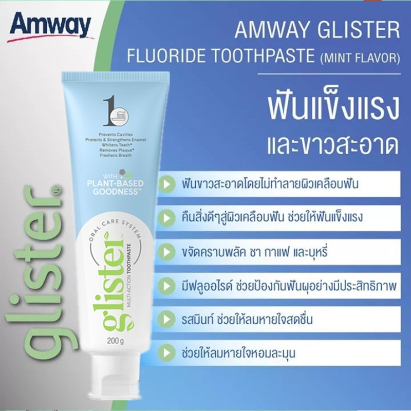 ซื้อ 1 แถม 2 แถมฟรีแปรงสีฟั Amway Glister Toothpaste ยาสีฟันกลิสเทอร์ แอมเวย์ Glister Fluoride Mint Flavor 200g
