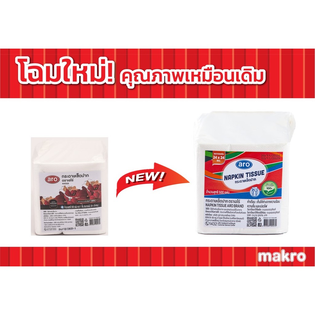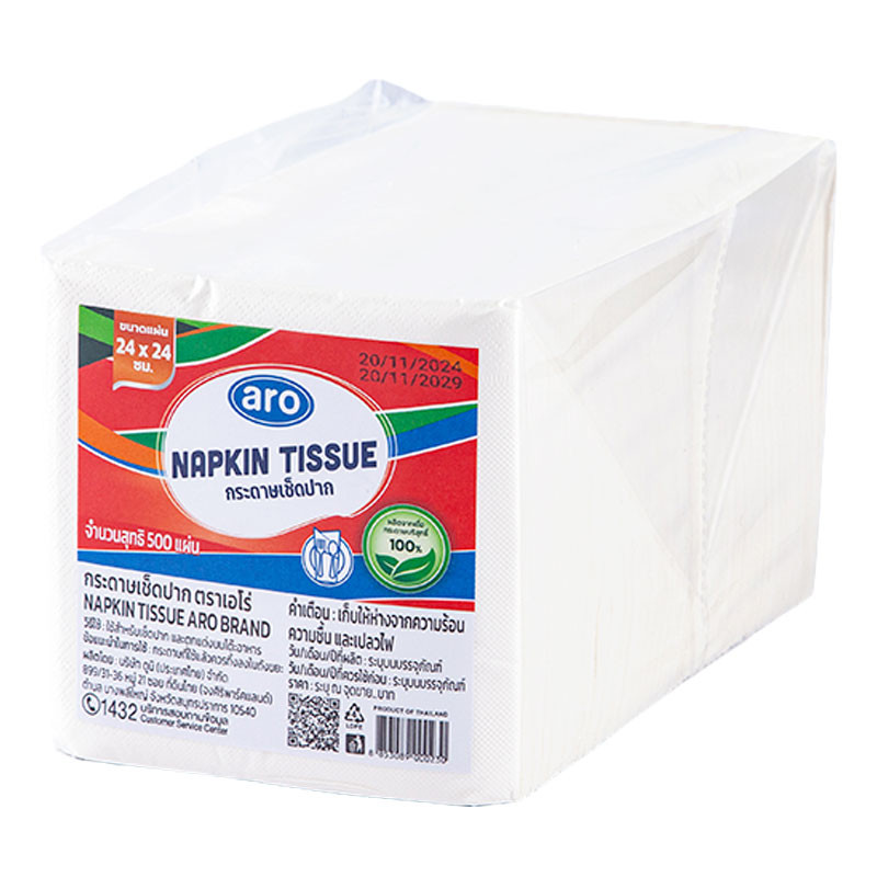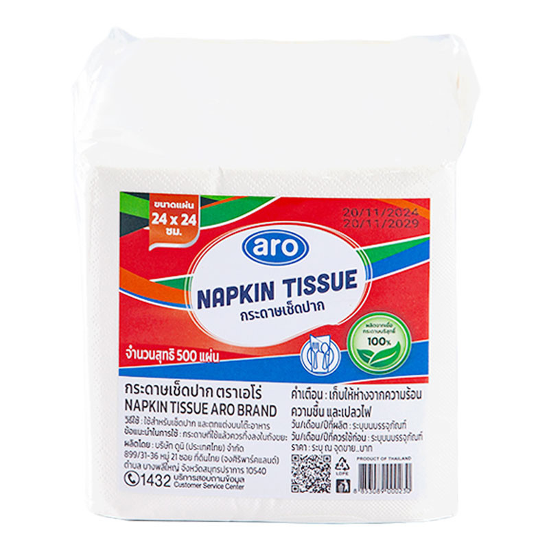 เอโร่ กระดาษเช็ดปาก 24×24 ซม. 500 แผ่น (ARO Napkin Tissue 24×24 cm 500 sheets)