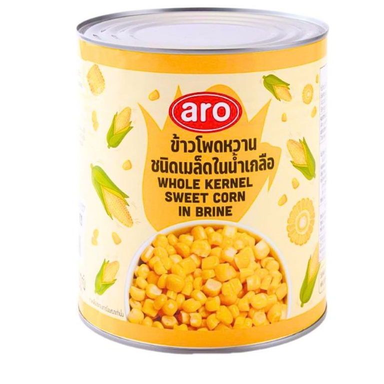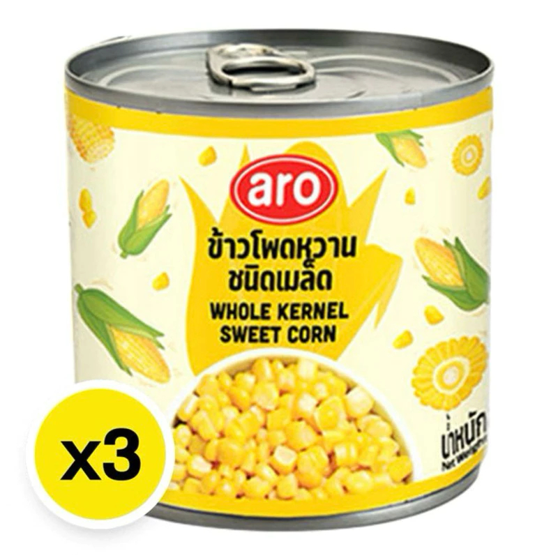 ข้าวโพดหวาน กระป๋อง Aro เอโร่ Sweet Corn ชนิดเม็ด ฝาดึงง่าย ปริมาณ 340กรัม ใช้ประกอบอาหาร