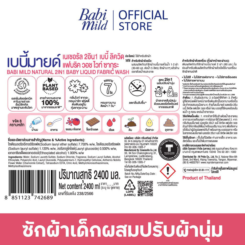 เบบี้มายด์ 2in1 น้ำยาซักผ้าเด็กและปรับผ้านุ่ม ไวท์ ซากุระ 2,400 มล. x4