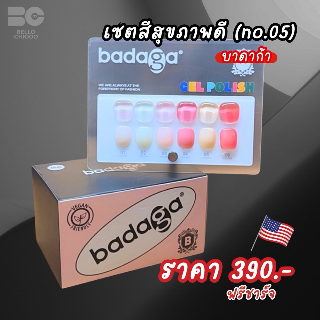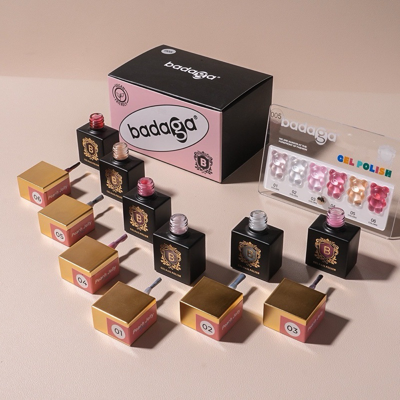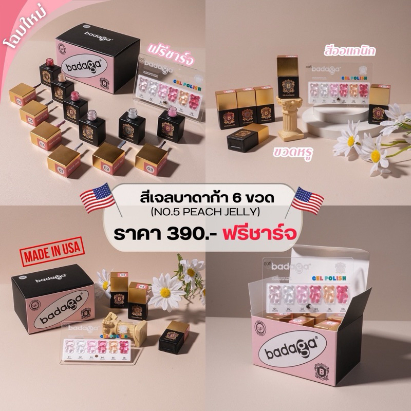 เซตสีเจลบาดาก้า6ขวดฟรีชาร์จสุขภาพดี (No.5 Peach) สีออแกนิก ขวดหรู made inUSA