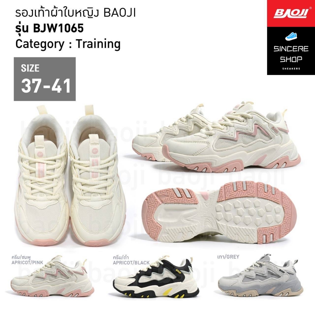 ✨️ Training !! ✨️ Baoji รองเท้าผ้าใบ รุ่น BJW1065 (สีครีม/ชมพู, ครีม/ดำ, เทา)