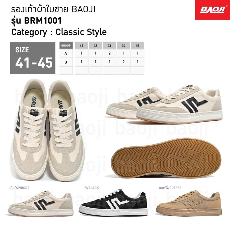 Baoji BRM 1001 รองเท้าผ้าใบบาโอจิ รองเท้าผ้าใบผู้ชาย ผูกเชือก ไซส์ 41-45 ของแท้ พร้อมส่ง