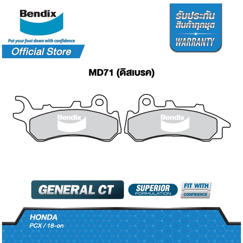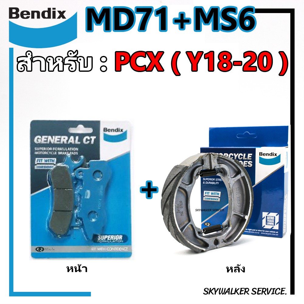 Bendix ชุดผ้าเบรค Honda PCX150, PCX160(ไม่มีABS) / (ปี’2018-ขึ้นไป) ดิสเบรคหน้า+ดรัมเบรคหลัง (MD71, MS6)