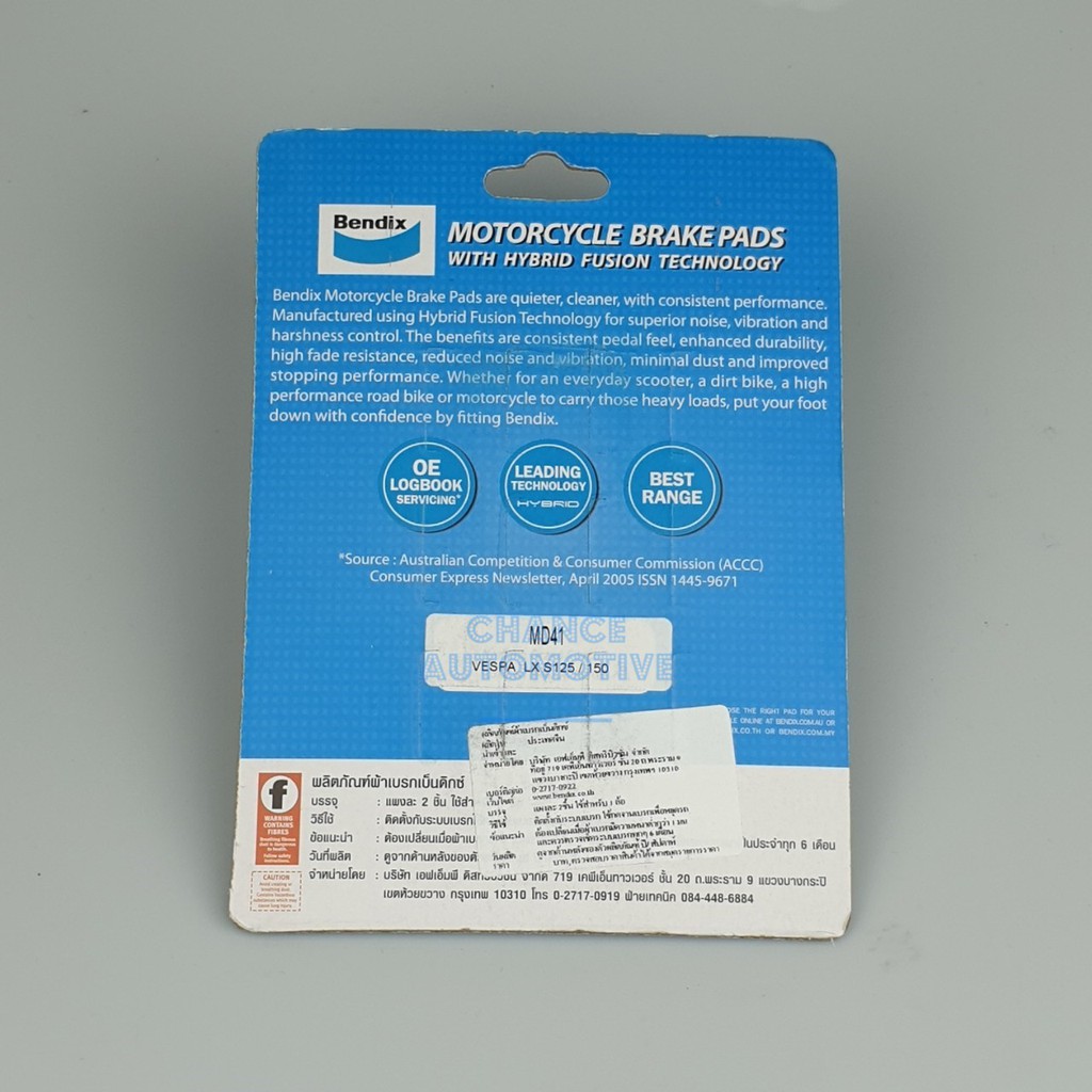 BENDIX ผ้าดิสเบรคล้อหน้า VESPA LX S125/ 150 (MD41)