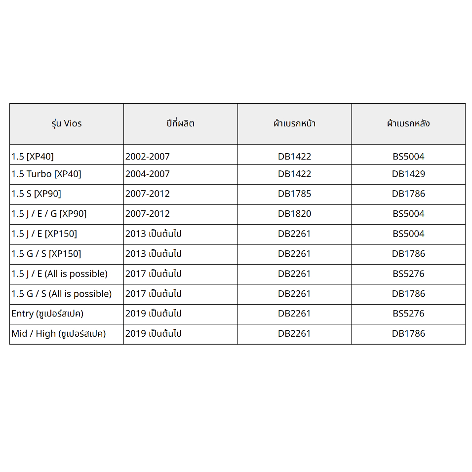 ผ้าเบรค Bendix Toyota Vios ทุกรุ่น วีออส [XP40, XP90, XP150, All is possible, Super Spec]