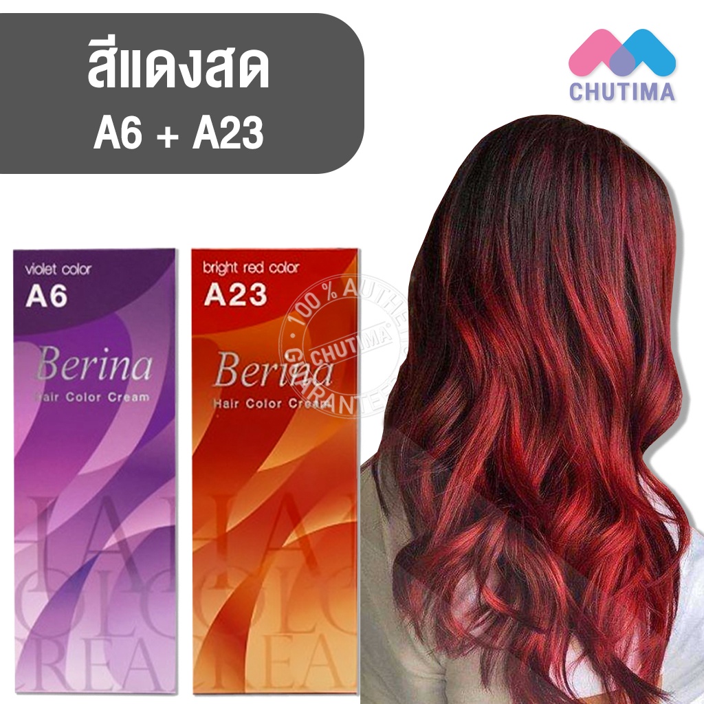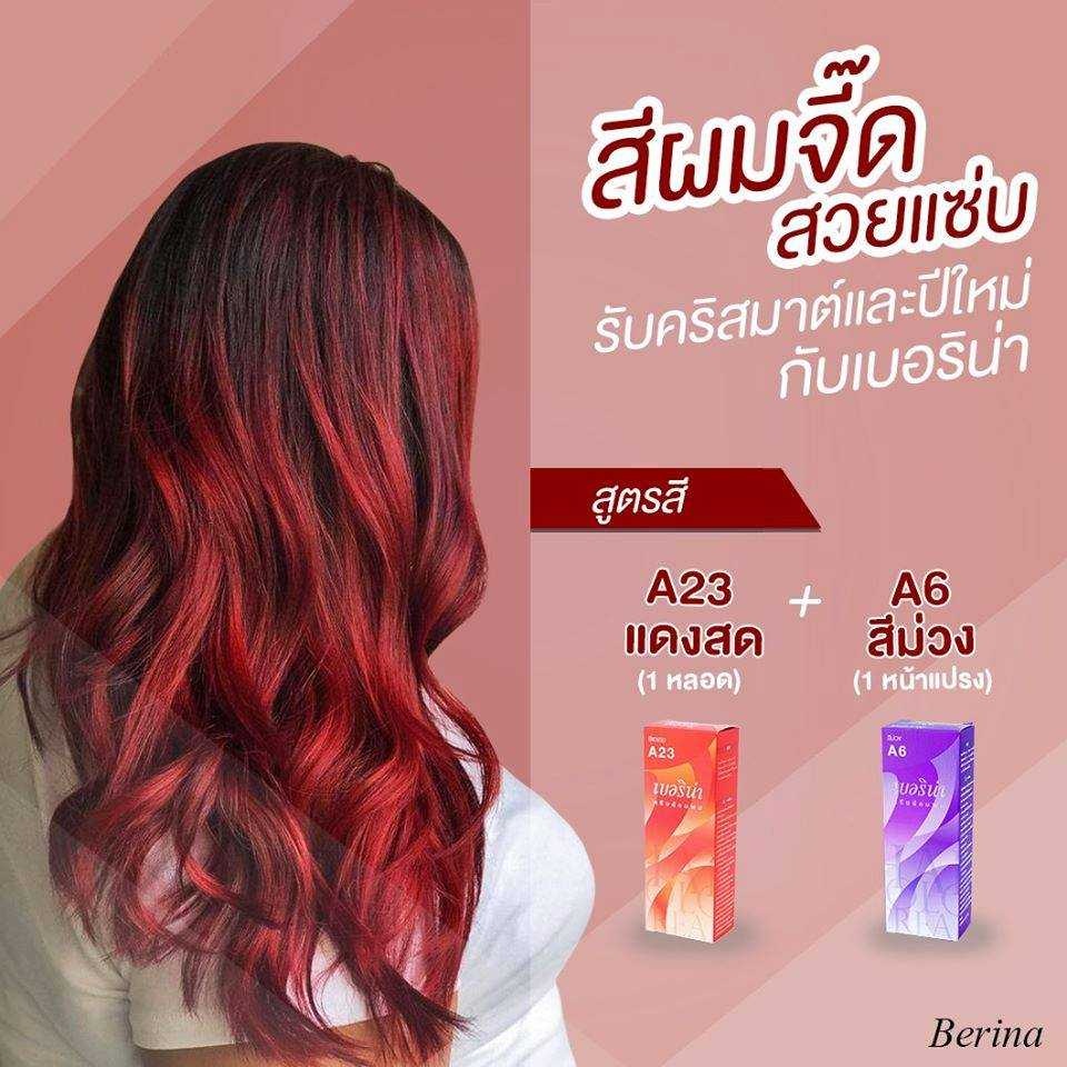 สีผมแฟชั่น เซตสีผม เบอริน่า สีแดงสด Berina Hair Color Set A6+A23 Bright red Hair