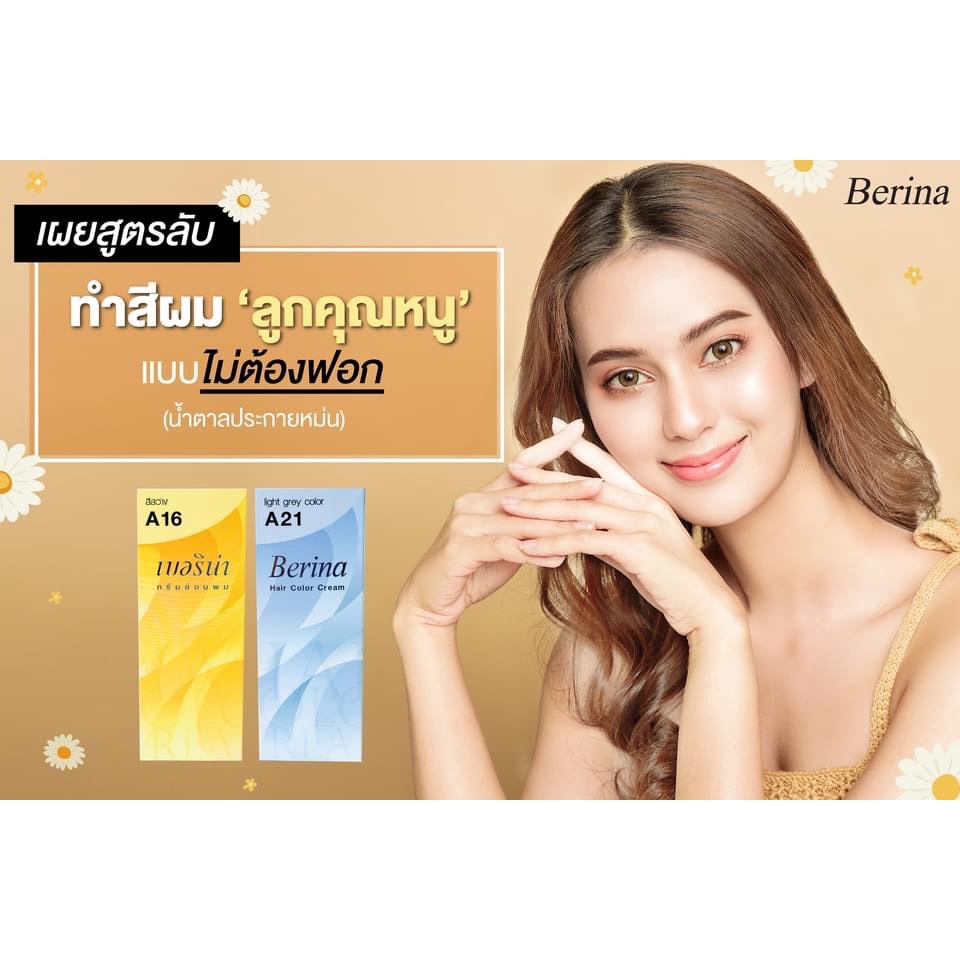 พร้อมส่ง Berina A16 เบอริน่า A16 สีย้อมผม สีสว่าง ยาย้อมผม ปิดผมหงอก ปิดผมขาว ครีมเปลี่ยนสีผม