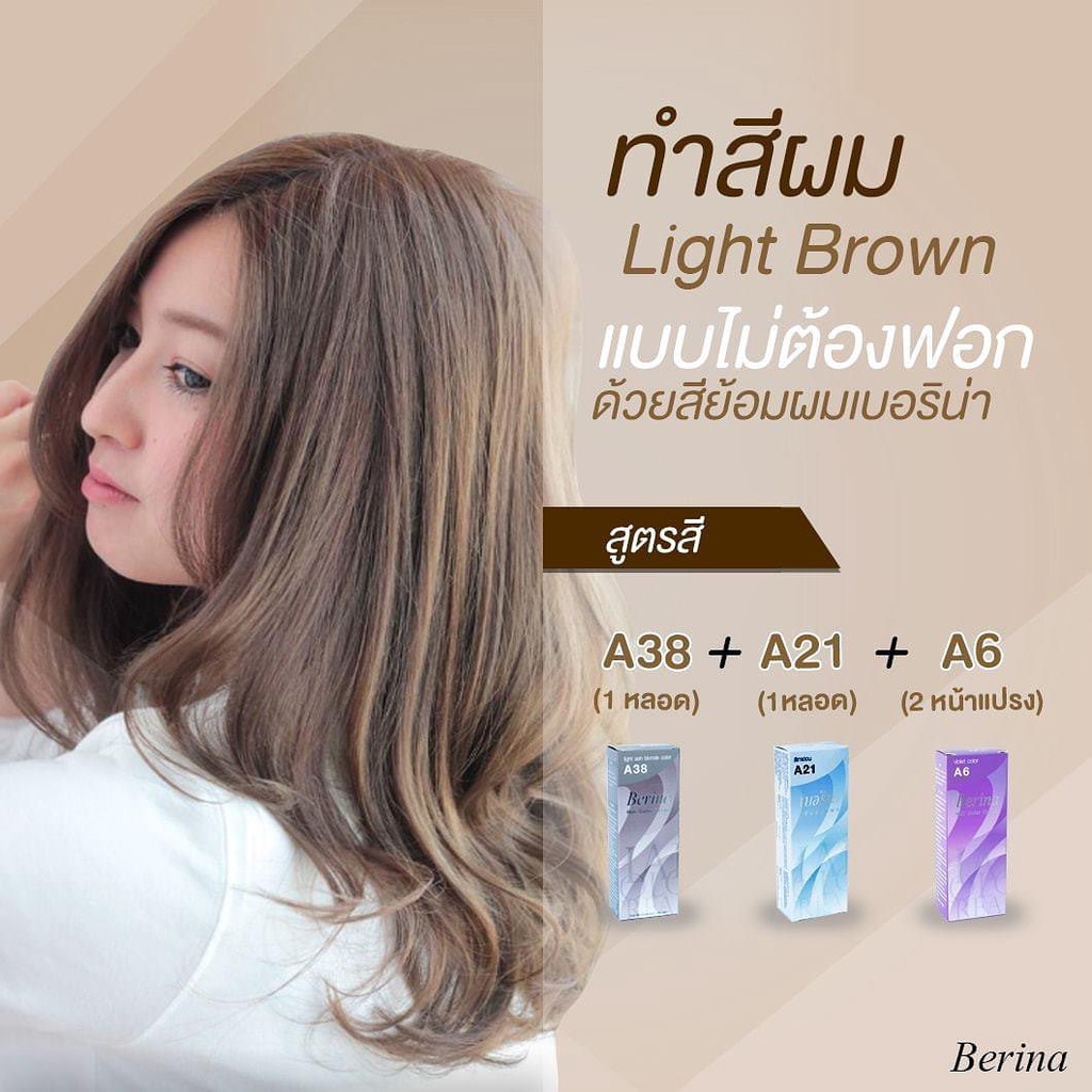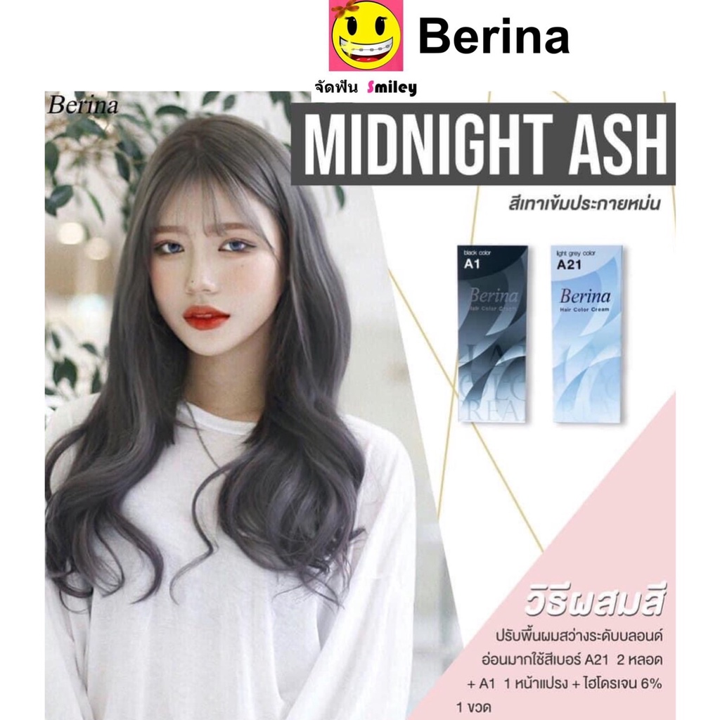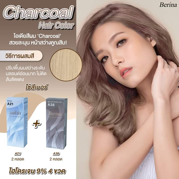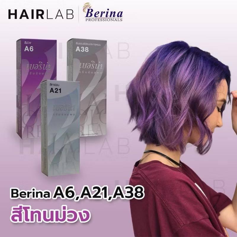 Berina เซตสีผมเบอริน่า A21+A38 สีเทาอ่อนประกายหม่น สีผมเบอริน่า สีย้อมผม ครีมย้อมผม