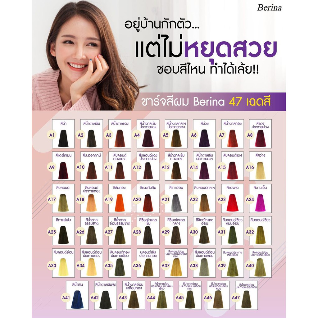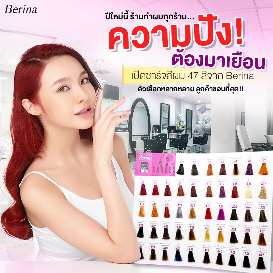 Berina เบอริน่า ยาย้อมผม สีย้อมผม ครีมย้อมผม สีผม 47 เฉดสี ราคาส่ง ทำสีผมเบอรีน่า