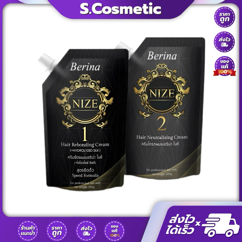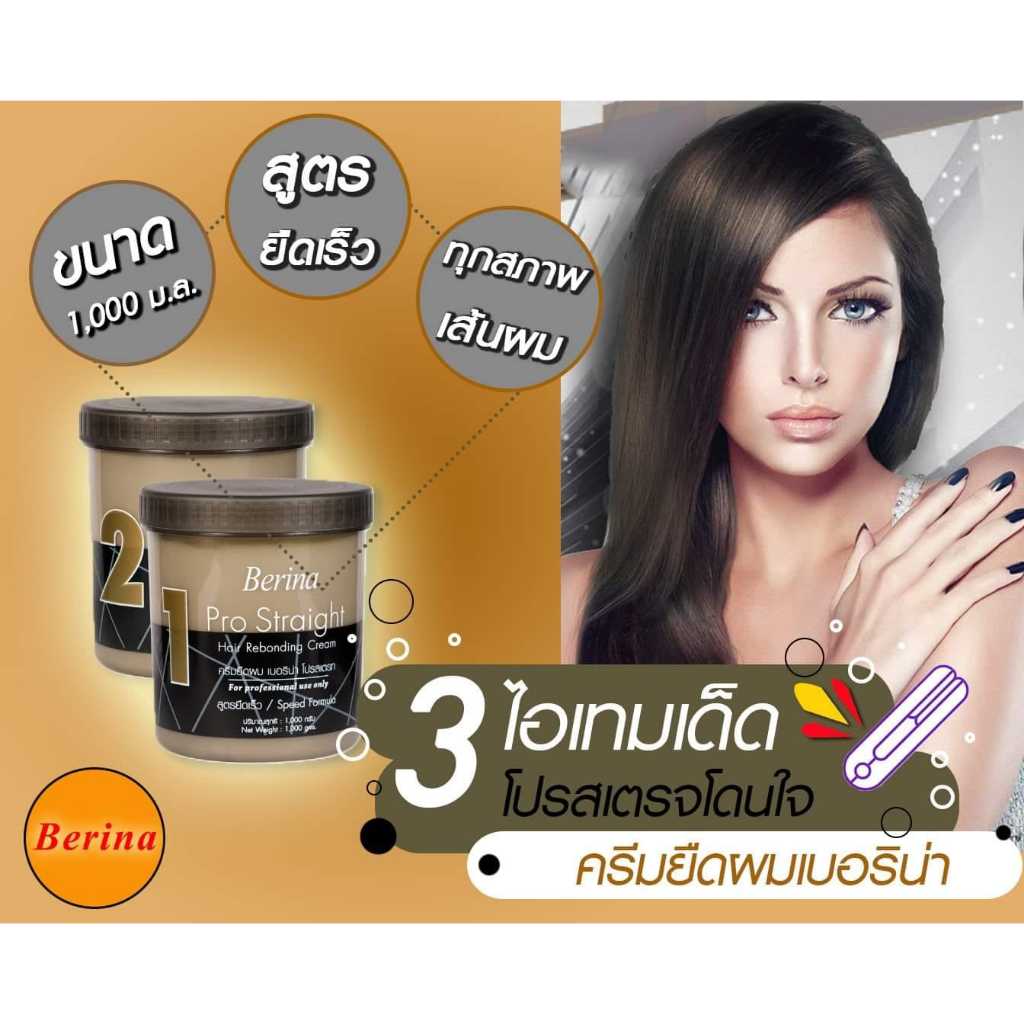 ครีมยืดผม เบอริน่า โปรเสตรท 1000g. Berina Pro Straight Hair Rebonding Cream and Relock Neutralizer Cream