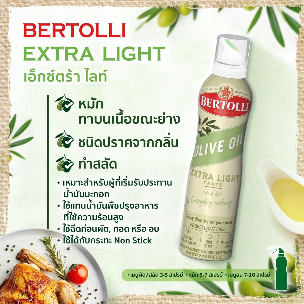 Bertolli Extra Light Tasting Olive Oil เบอร์ทอลลี่ น้ำมันมะกอกปรุงอาหาร ผ่านกรรมวิธี 500 มล.