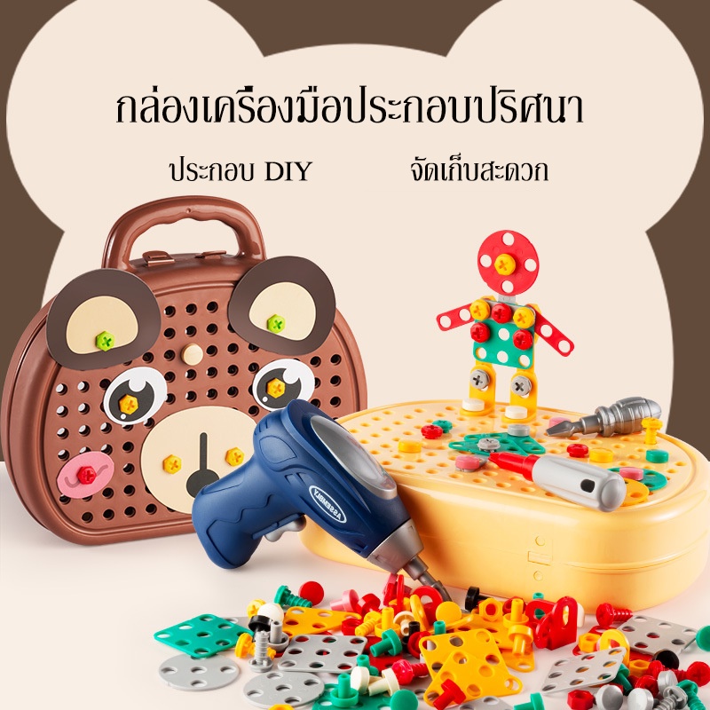 BHQ พร้อมส่ง ของเล่นเครื่องมือช่าง ของเล่นเด็กผู้ชาย ด้วยสว่านไฟฟ้า DIY ความสนุกของการขันสกรู