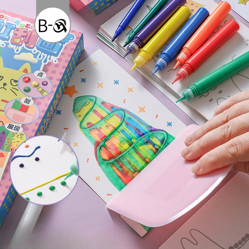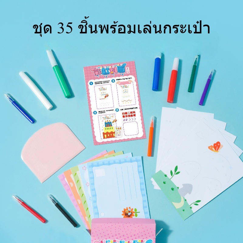 BHQ ของเล่นวิจิตรศิลป์ ชุดศิลปะการขูดสีรุ้ง DIY โปสการ์ดวาดมือ