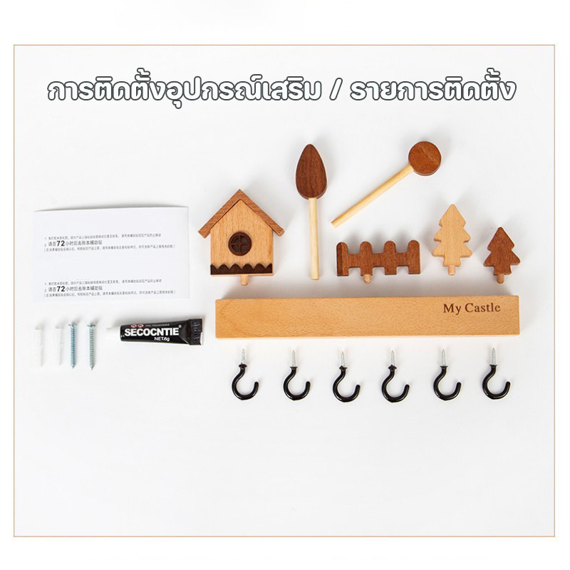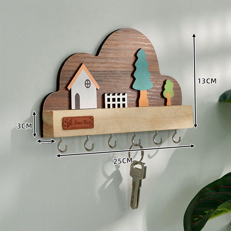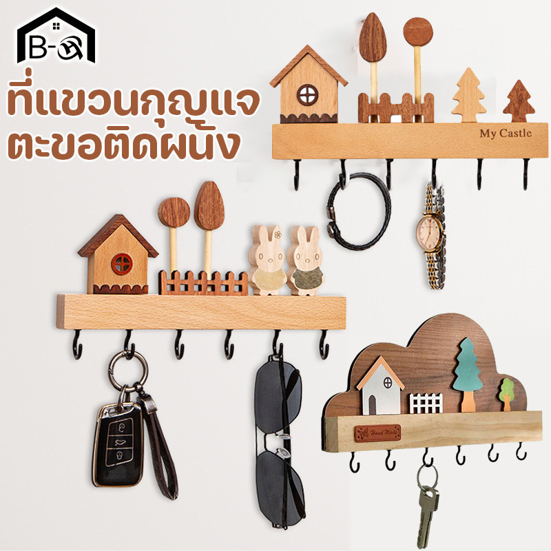 BHQ ชั้นวางตะขอกุญแจ ติดผนังที่วางกุญแจทางเข้า อุปกรณ์เสริมตกแต่งบ้านปลอดสารพิษ