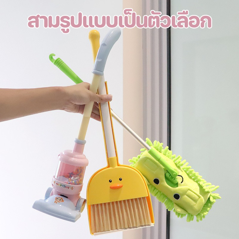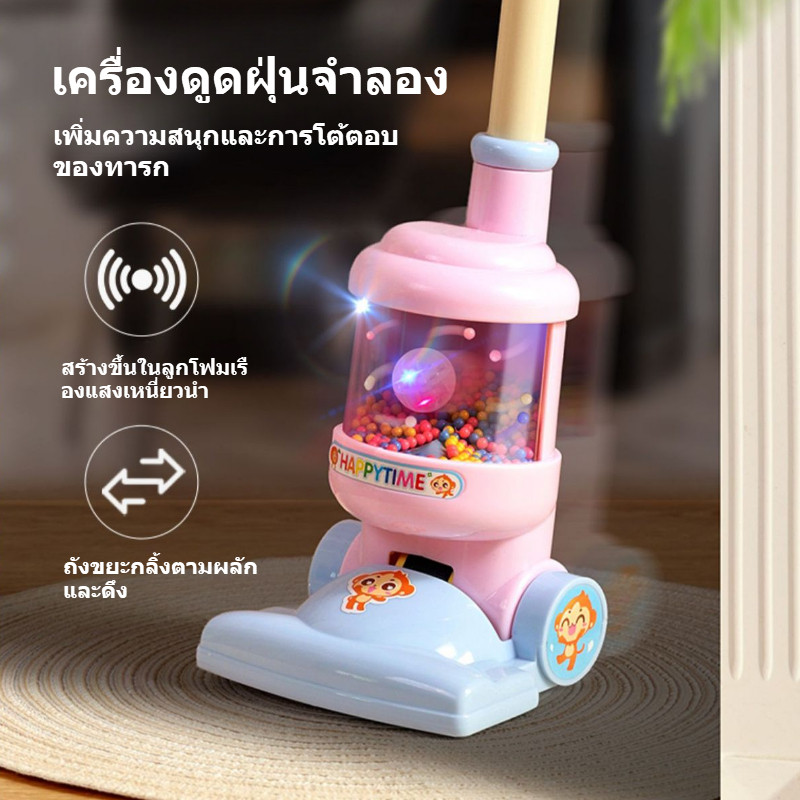 BHQ ของเล่นทำความสะอาดแกล้งเด็ก ไม้กวาดเด็ก เครื่องดูดฝุ่นจำลอง ด้วยแสง