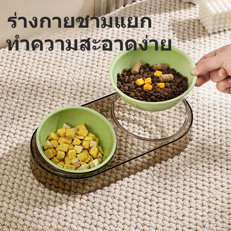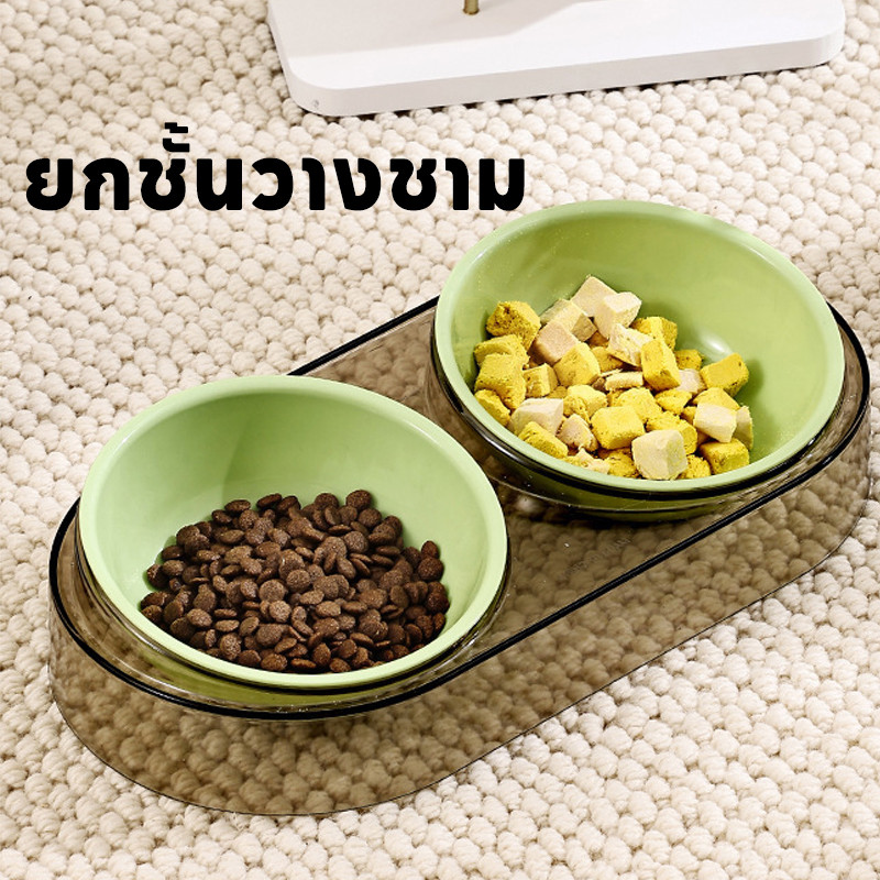 BHQ ชามใส่อาหารสัตว์เลี้ยง Clear ins-style Pet Double Bowl น้ําดื่มสีอาหารสัตว์เลี้ยง all-in-one