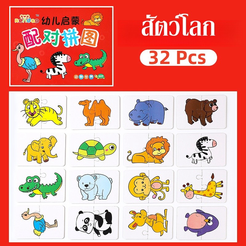 BHQ จิ๊กซอว์เด็ก ของเล่นเสริมการศึกษา การ์ดจับคู่ 32PCS เหมาะสําหรับเด็กอายุ 1-4 ปี
