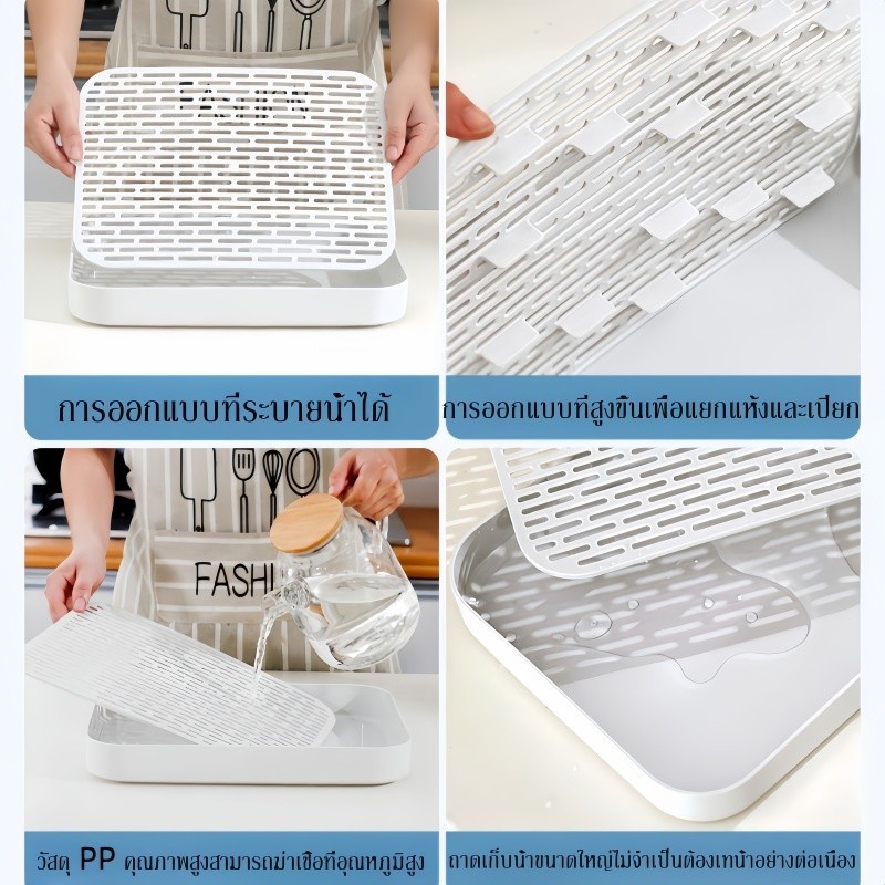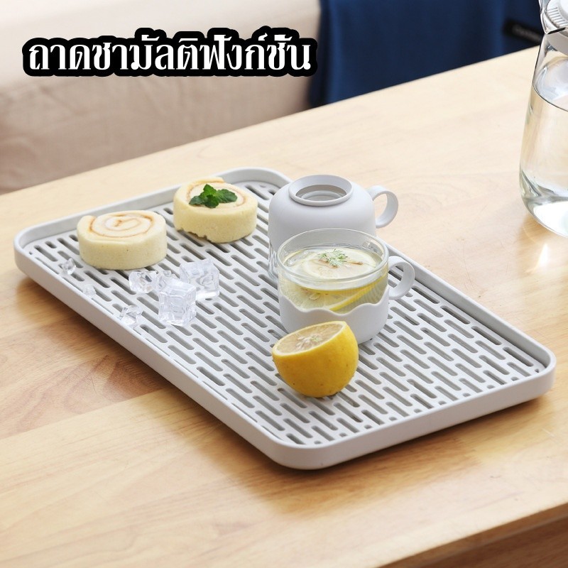 พร้อมส่ง ถาดวางแก้ว ถาดอเนกประสงค์ มี 4 ขนาด วัสดุพลาสติก pp ที่คว่ำจาน มีตะแกรงรองน้ำ