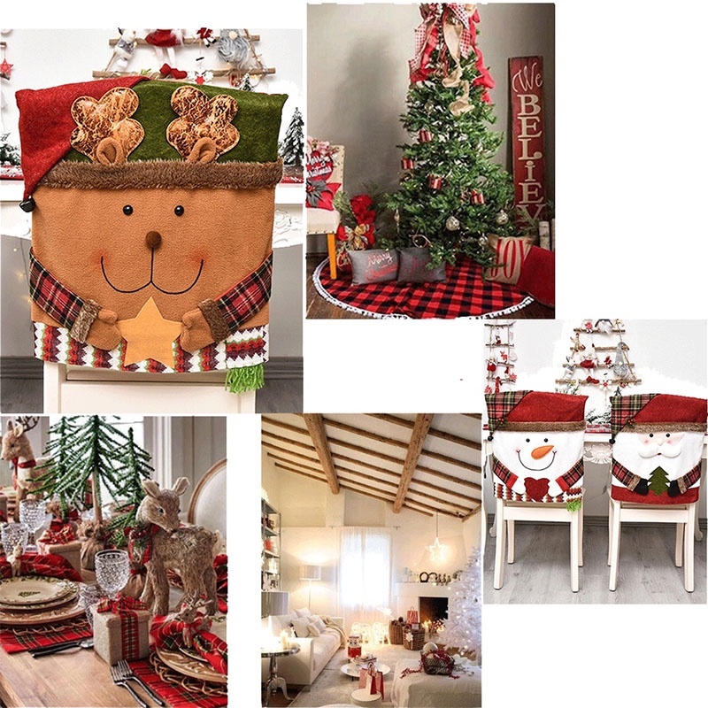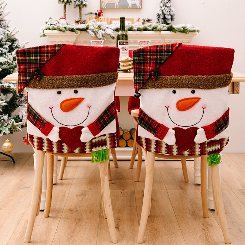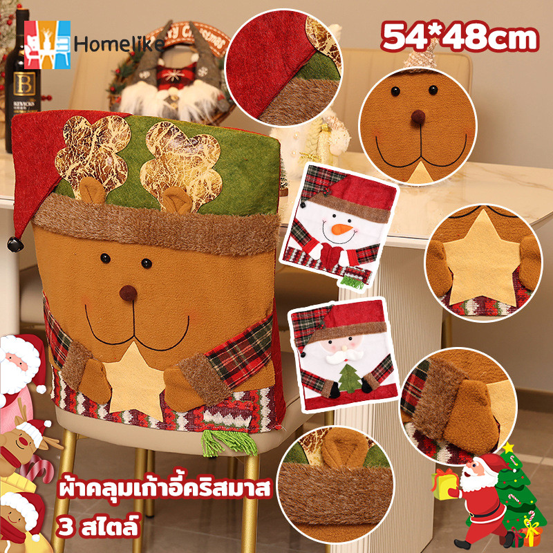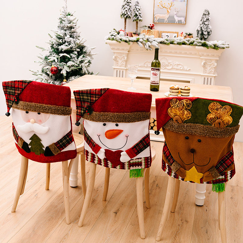ผ้าคลุมเก้าอี้ ผ้าคลุมเก้าอี้คริสมาส ลายซานต้าครอส สําหรับตกแต่งโต๊ะ ของตกแต่งวันคริสต์มาส