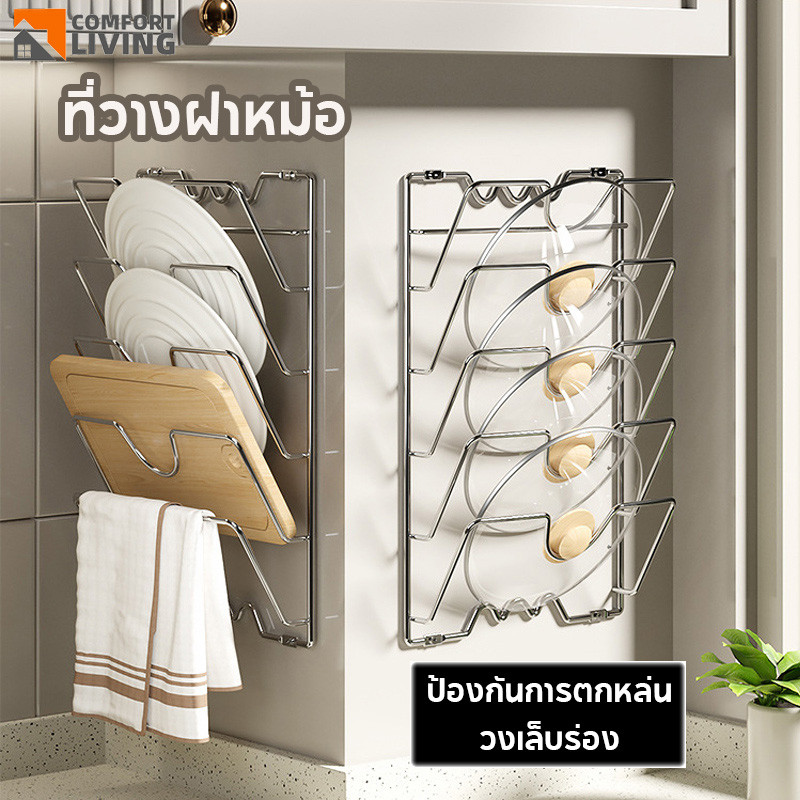 🏡ชั้นวางฝาหม้อ แบบติดผนัง อเนกประสงค์ สําหรับห้องครัว ชั้นวางเขียง ชั้นเก็บของอเนกประสงค์
