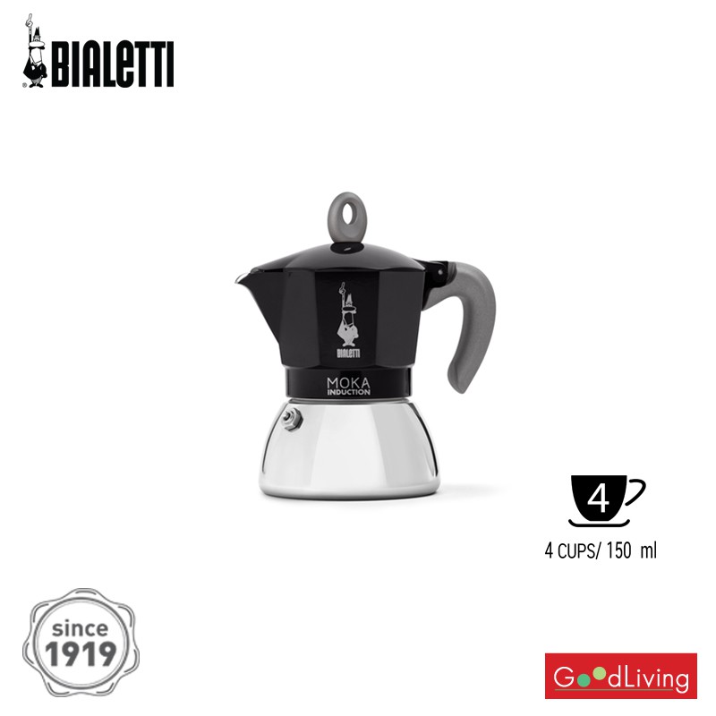 Bialetti หม้อต้มกาแฟ Moka Pot รุ่น Moka Induction โมคาอินดักชั่น สีดำ ขนาด 4 ถ้วย