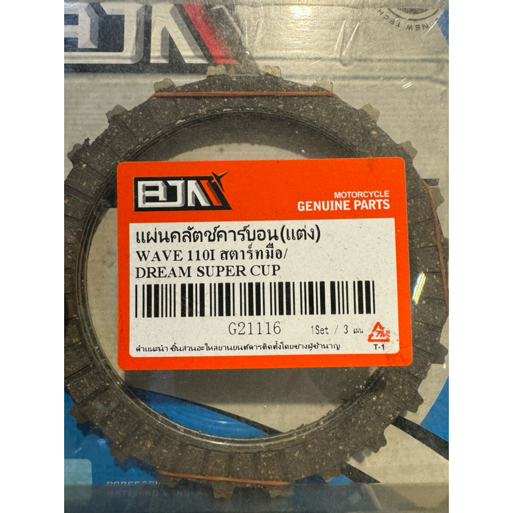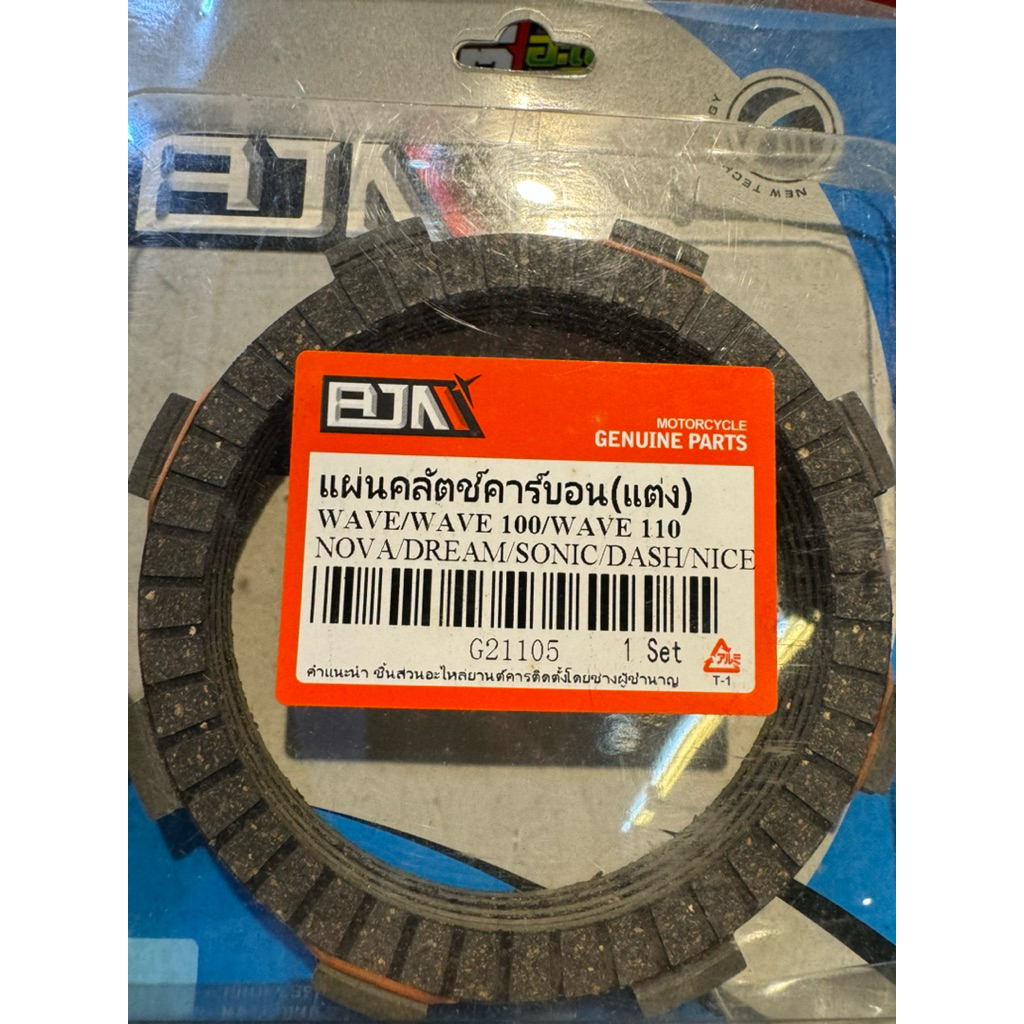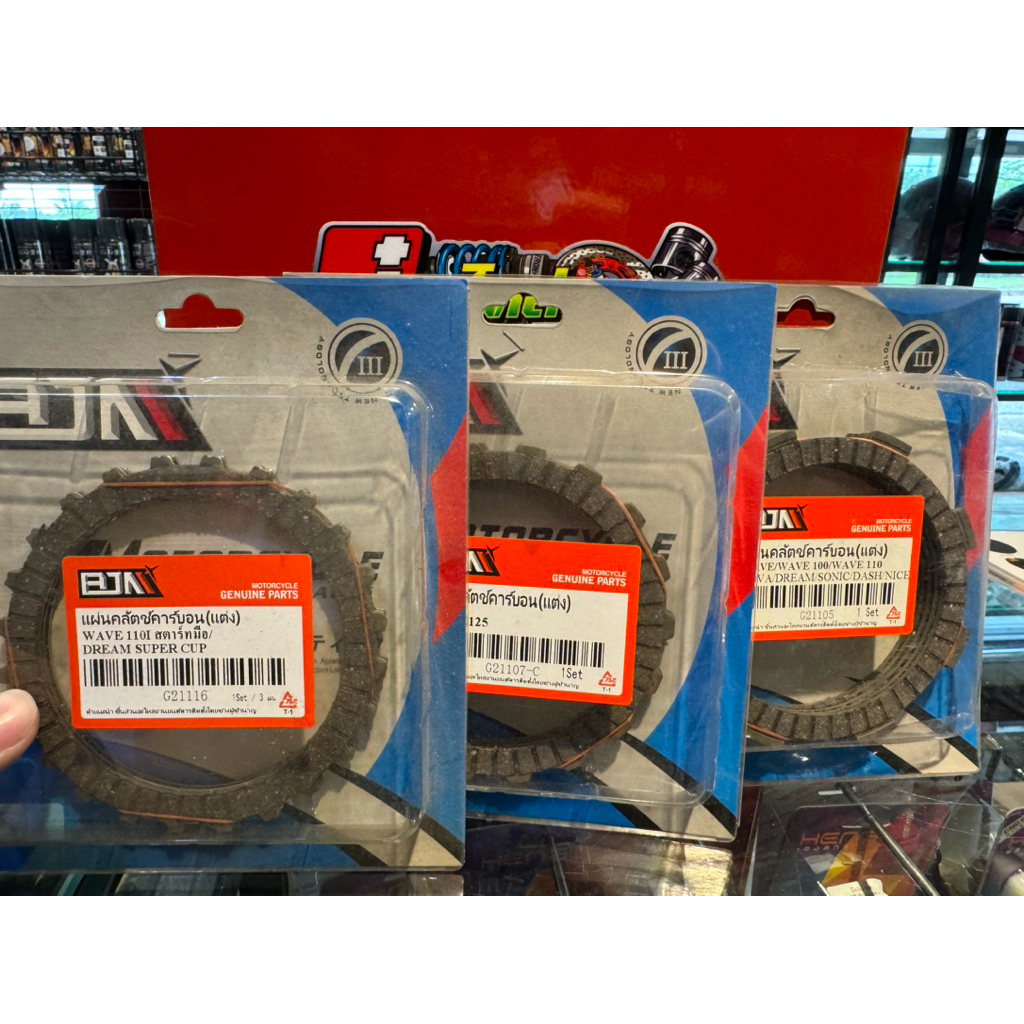 แผ่นครัช คาร์บอน (แต่ง) จับดีกว่าของเดิมแน่นอน BJN มีหลายรุ่น เวฟ125 110ไอ ดรีมซุปเปร์คัพ รุ่น น็อตเสา6ตัว W100-110คาบู