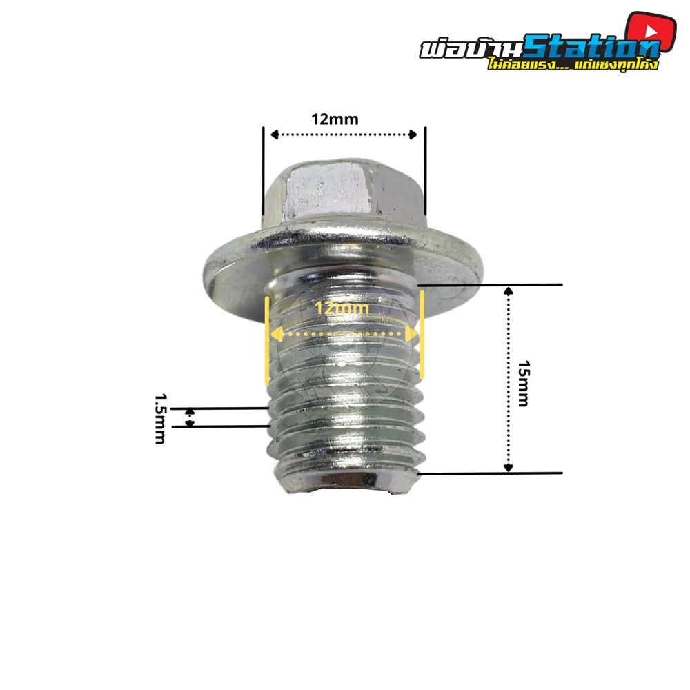 น็อตถ่ายน้ำมันเครื่อง BJN พร้อมแหวนรอง เบอร์ 12 เกลียว 12mm สำหรับ Yamaha ทุกรุ่น