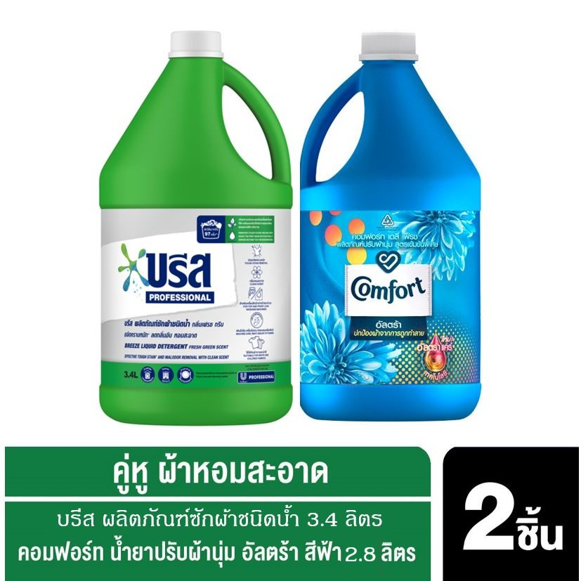 บรีส ผลิตภัณฑ์ซักผ้าชนิดน้ำ 3.4 ลิตร+ คอมฟอร์ท น้ำยาปรับผ้านุ่ม อัลตร้า สีฟ้า 2.8 ลิตร