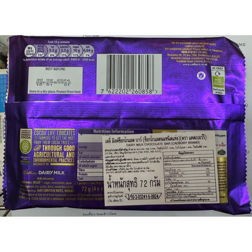 Cadbury Dairy Milk Little Bars 72G ช็อคโกแลต ขนมหวาน ขนม Chocolate