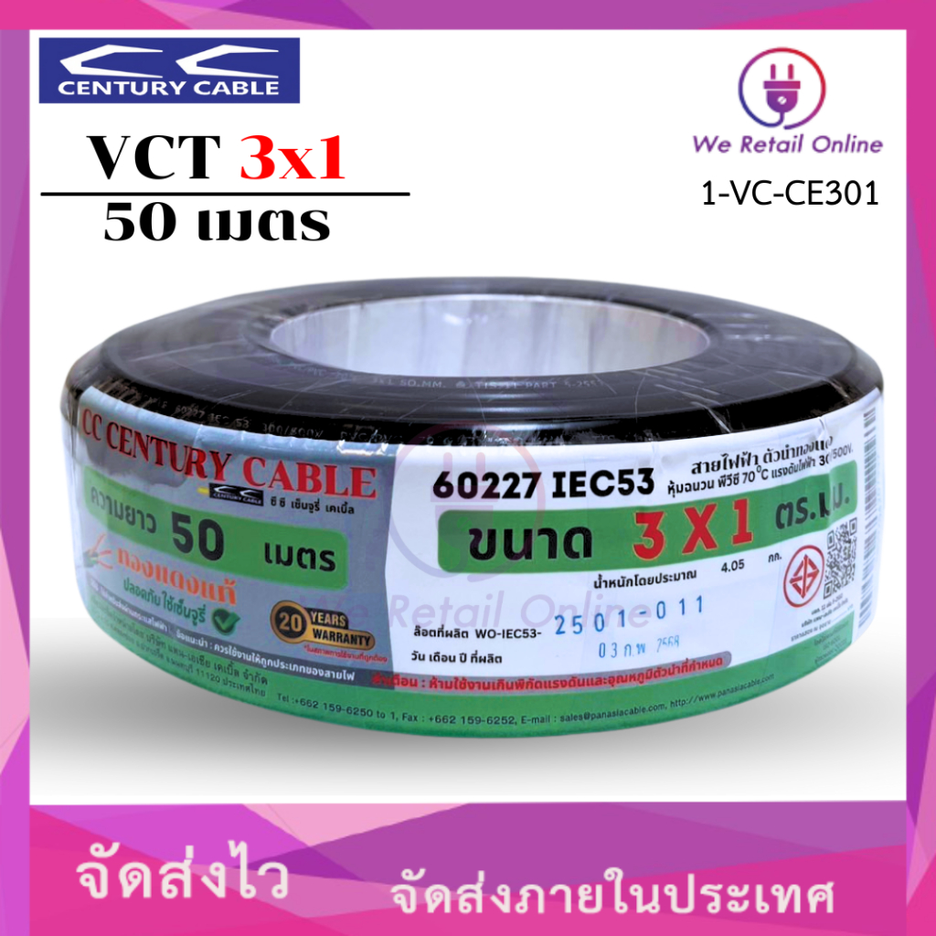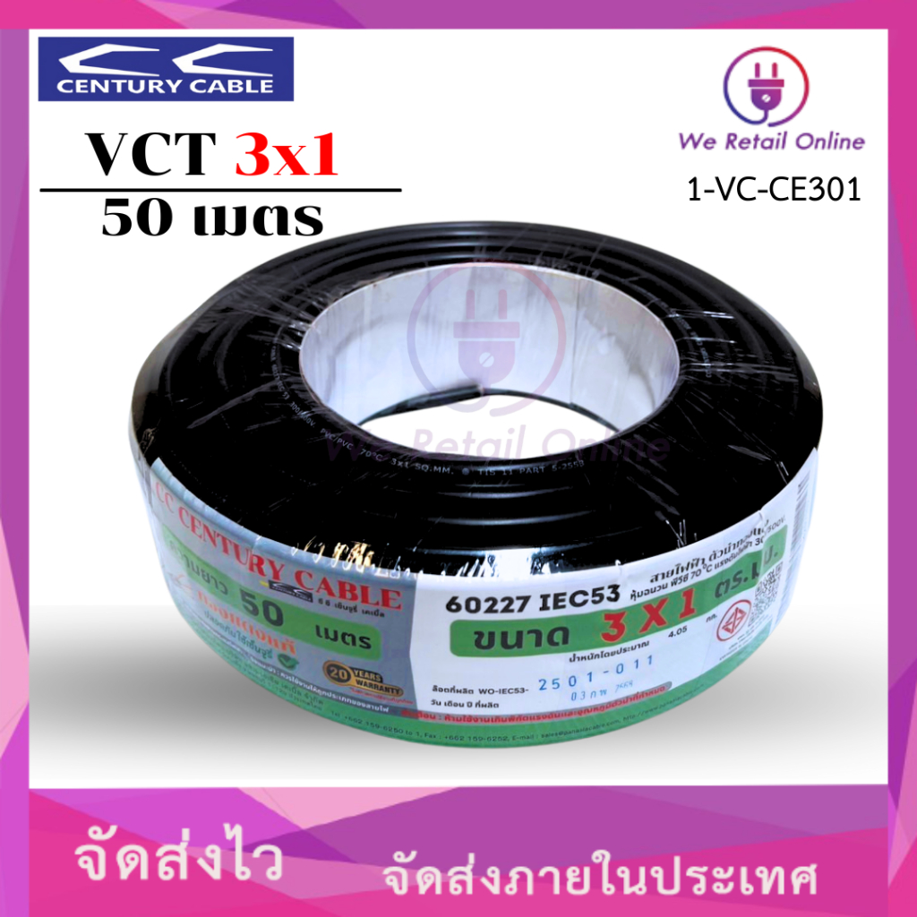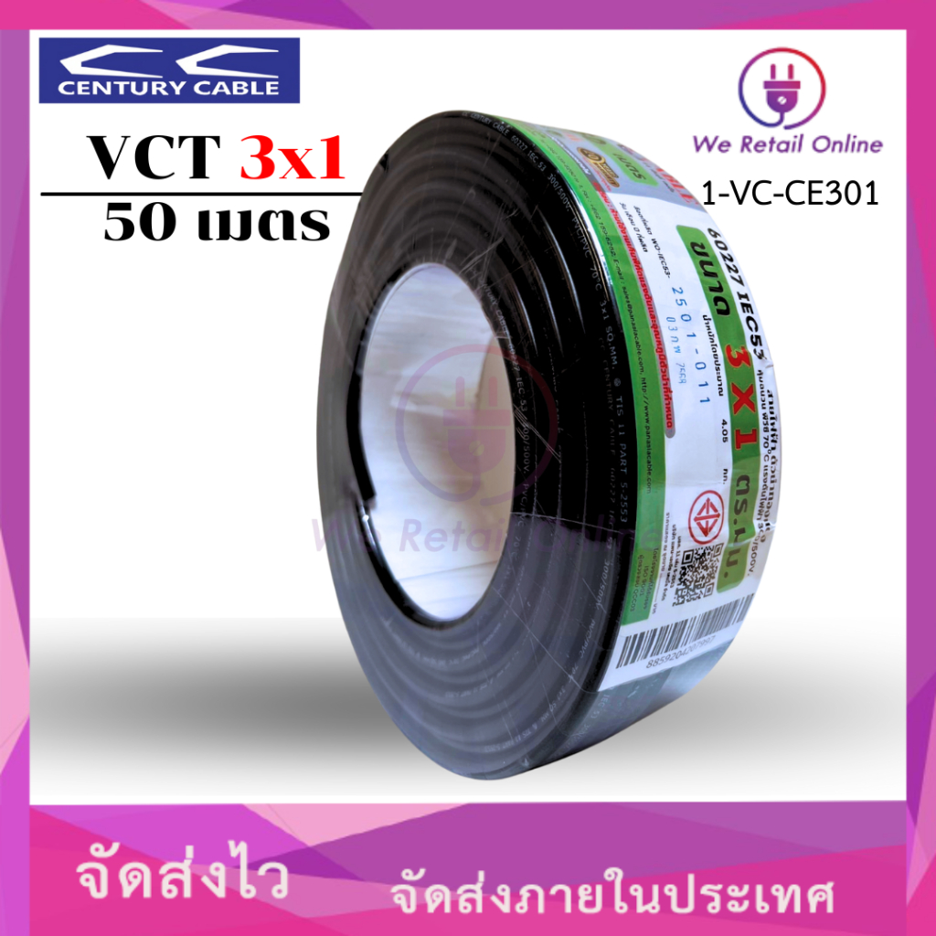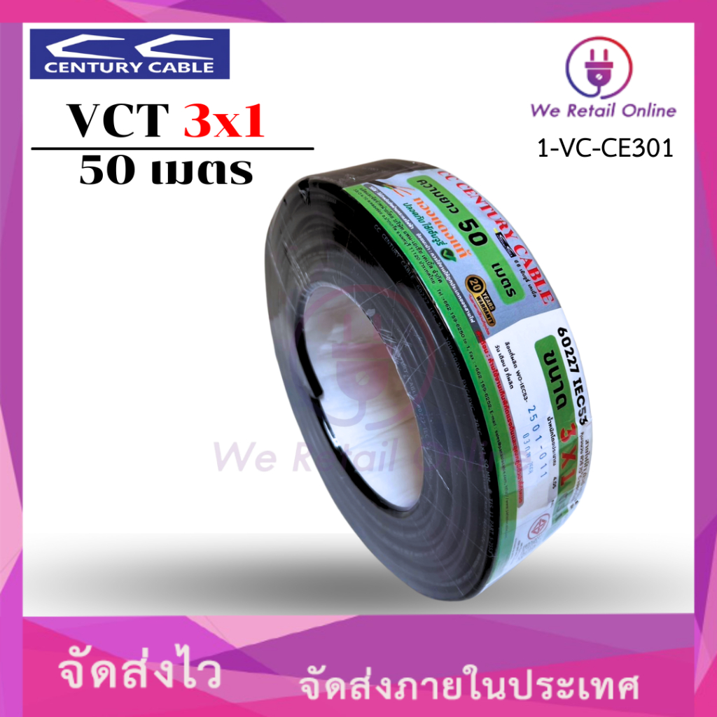 สายไฟ VCT 3×1 Sqmm. ยาว50เมตร CENTURY