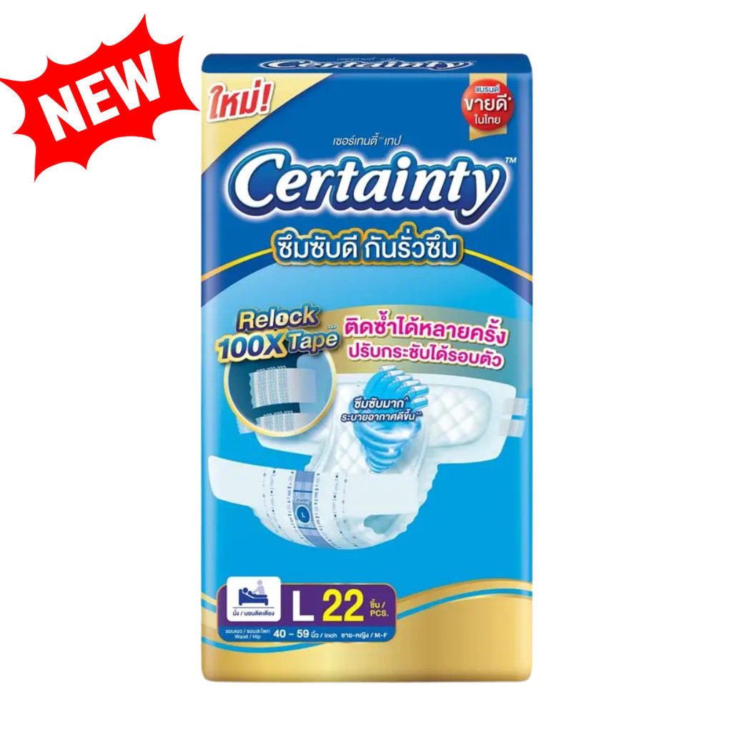 [1Xแพ็คใหญ่] CERTAINTY TAPE ผ้าอ้อมผู้ใหญ่แบบเทป เซอร์เทนตี้ เทป 4Extra Lock พร้อมส่ง Size M/L