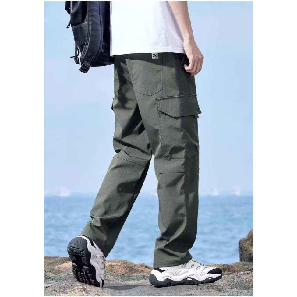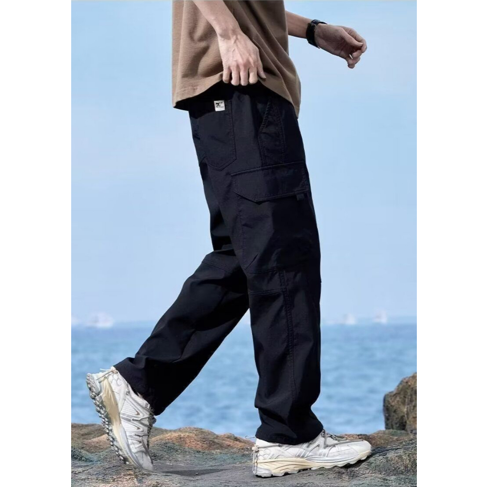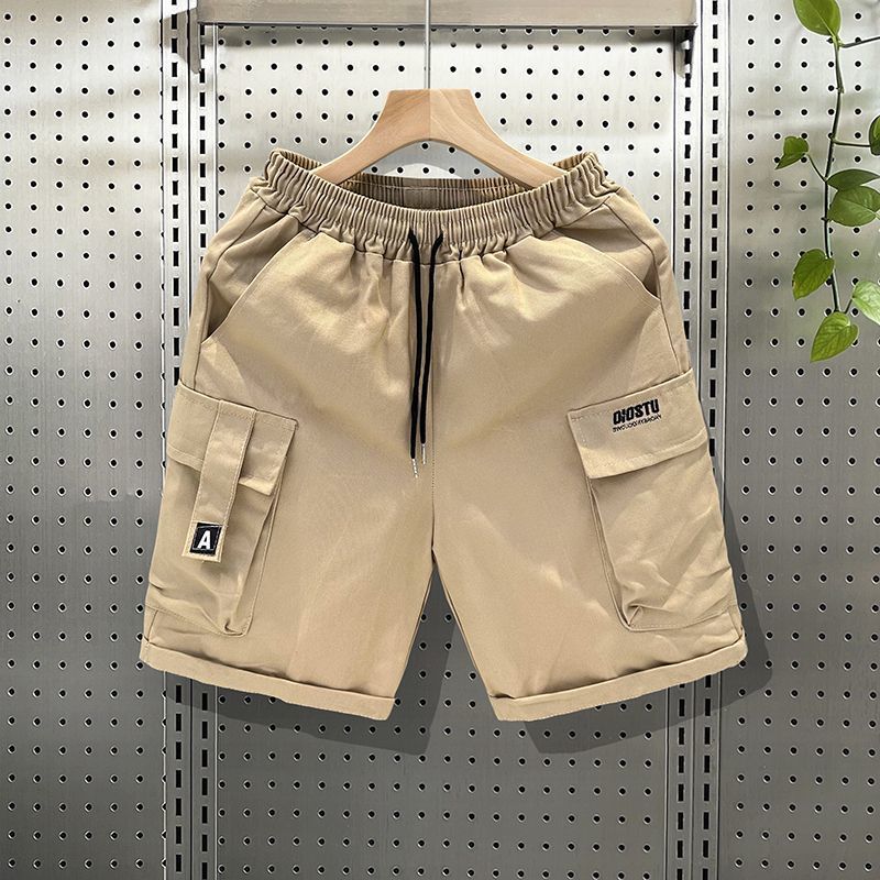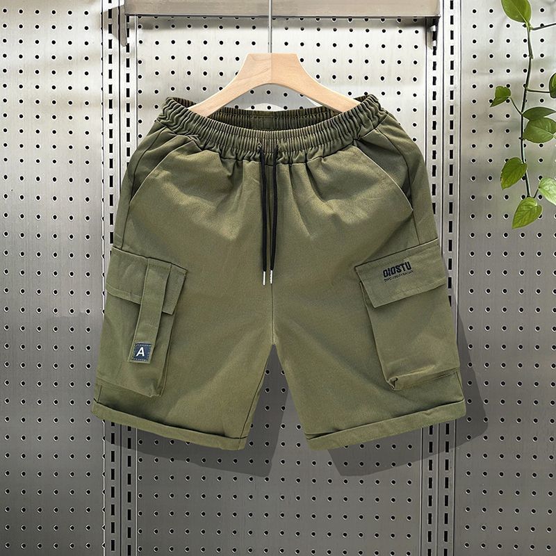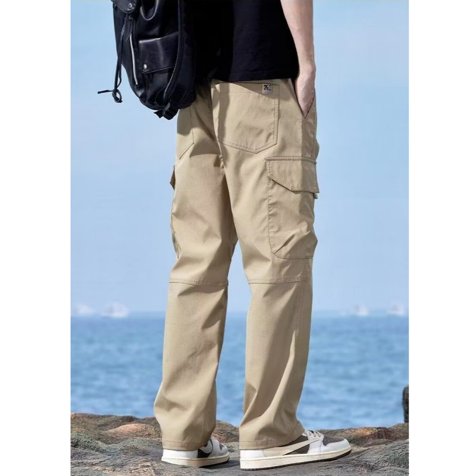 กางเกงคาร์โก้ขาตรงลําลองผู้ชาย, กระเป๋าหลายใบสไตล์อเมริกัน, ขอบเอวยางยืดใส่สบาย, กางเกงขาสั้นผู้ชายมีเก็บเงินปลายทาง