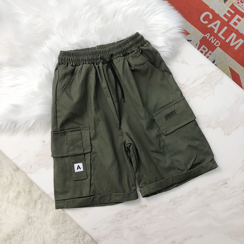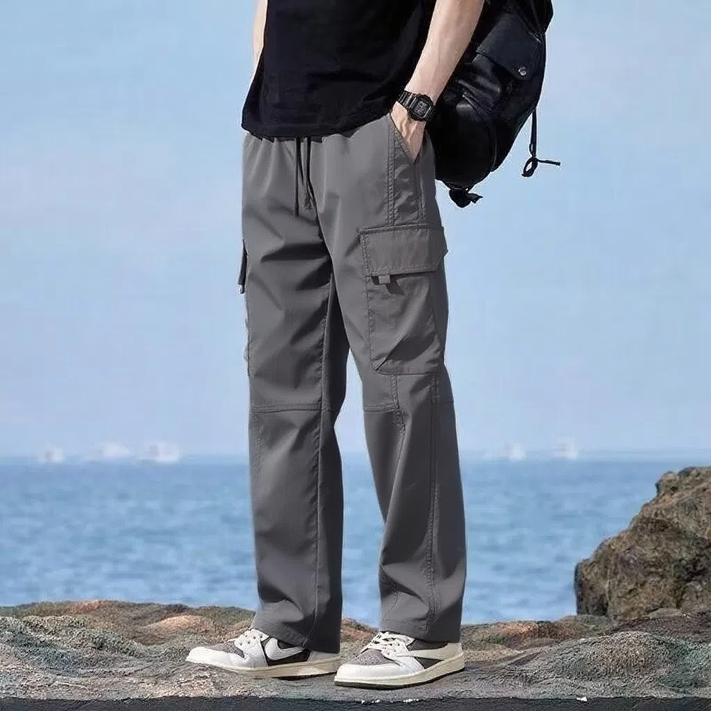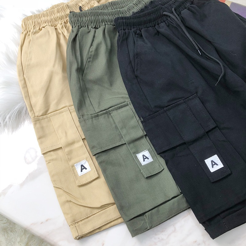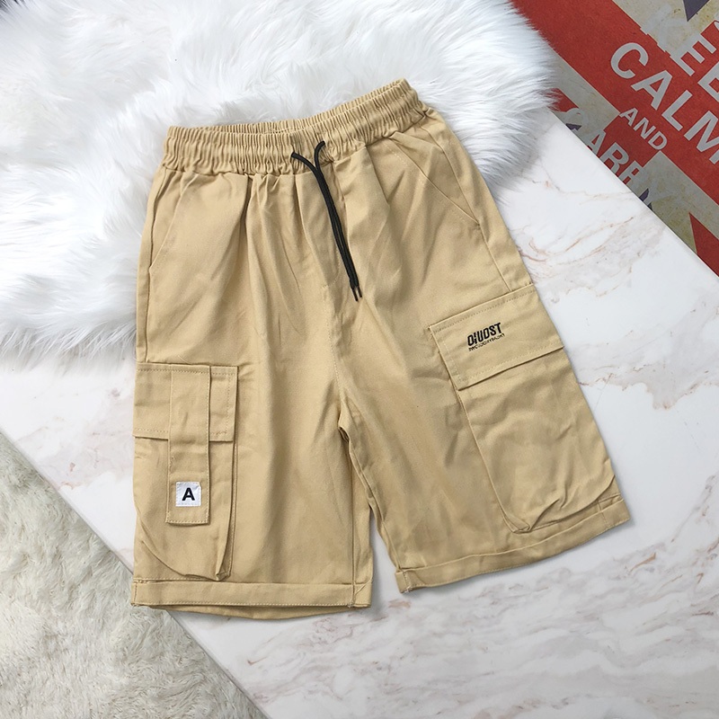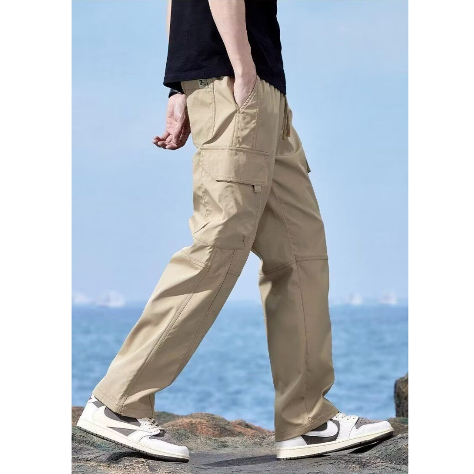 กางเกงคาร์โก้ขาตรงลําลองผู้ชาย, กระเป๋าหลายใบสไตล์อเมริกัน, ขอบเอวยางยืดใส่สบาย, กางเกงขาสั้นผู้ชายมีเก็บเงินปลายทาง