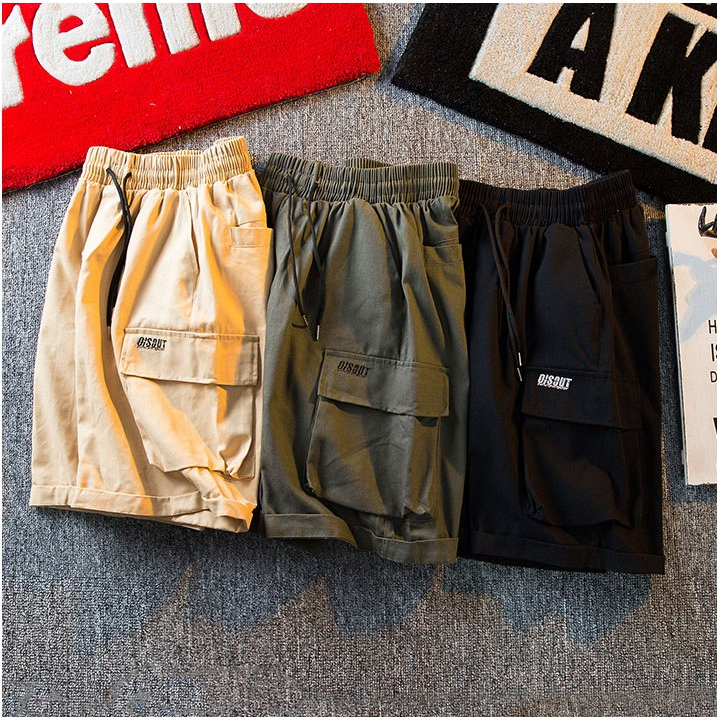พร้อมส่ง กางเกงขาสั้นลำลองชาย ทรงหลวม กางเกงขาสั้นทรงคาร์โก้หลายกระเป๋า ไซส์ใหญ่ M-5XL