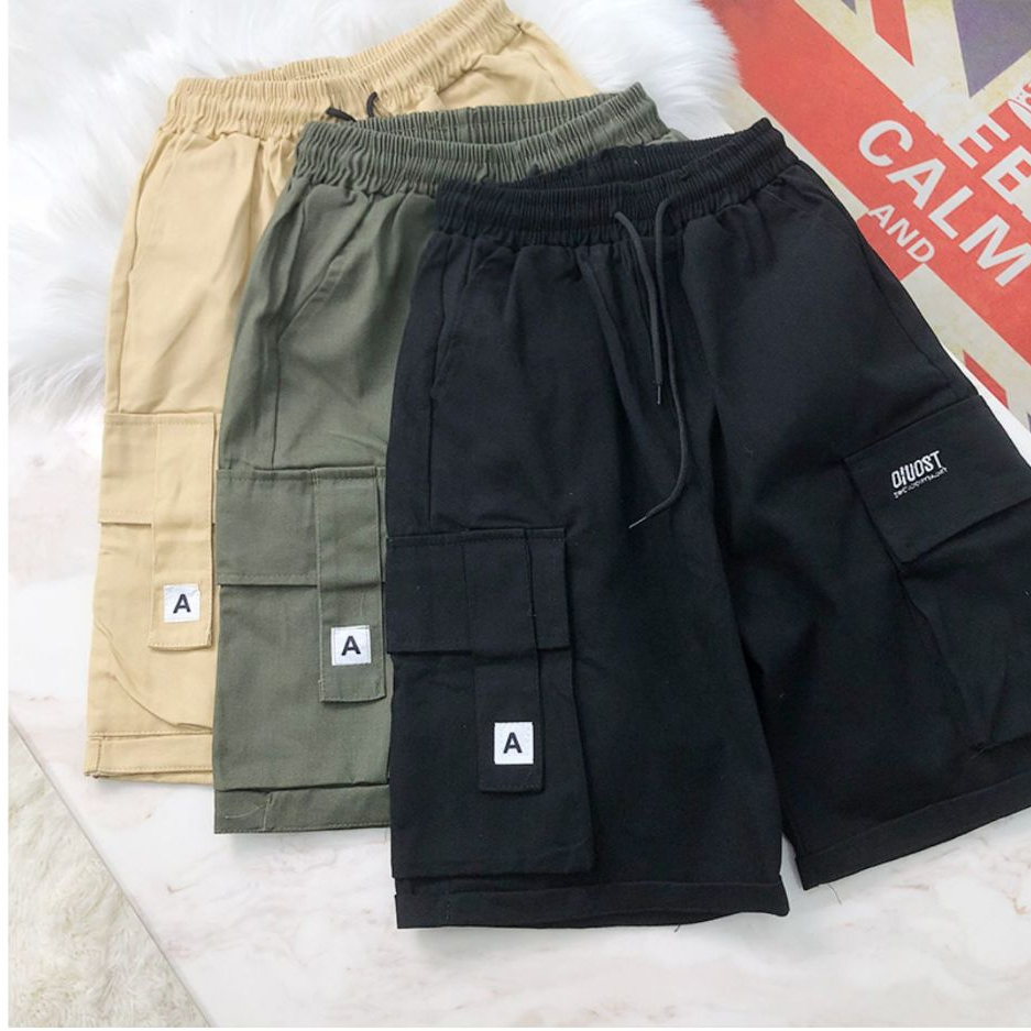 กางเกงขาสั้นชายใหม่ เอวยางยืด เอี๊ยมหลายกระเป๋า คุณภาพดี ราคาถูก