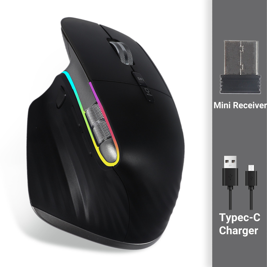 2.4g บลูทูธไร้สายแนวตั้ง Mute Mouse Optical Ergonomic Mice Type-C ชาร์จ Dual Mode Gaming Office สําหรับคอมพิวเตอร์แล็ปท็อป